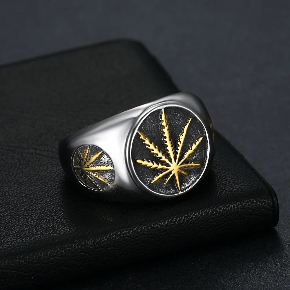 Мужское кольцо из нержавеющей стали с Кленовым листом