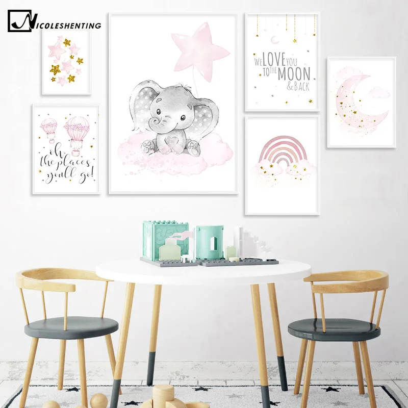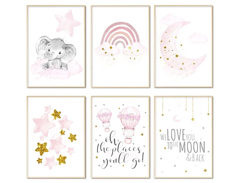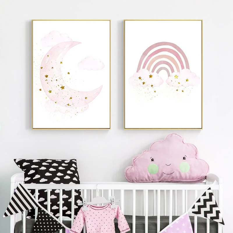 Детский постер, детский настенный художественный холст с принтом, рисунок радуги, каллиграфия, Скандинавское украшение для спальни для девочек