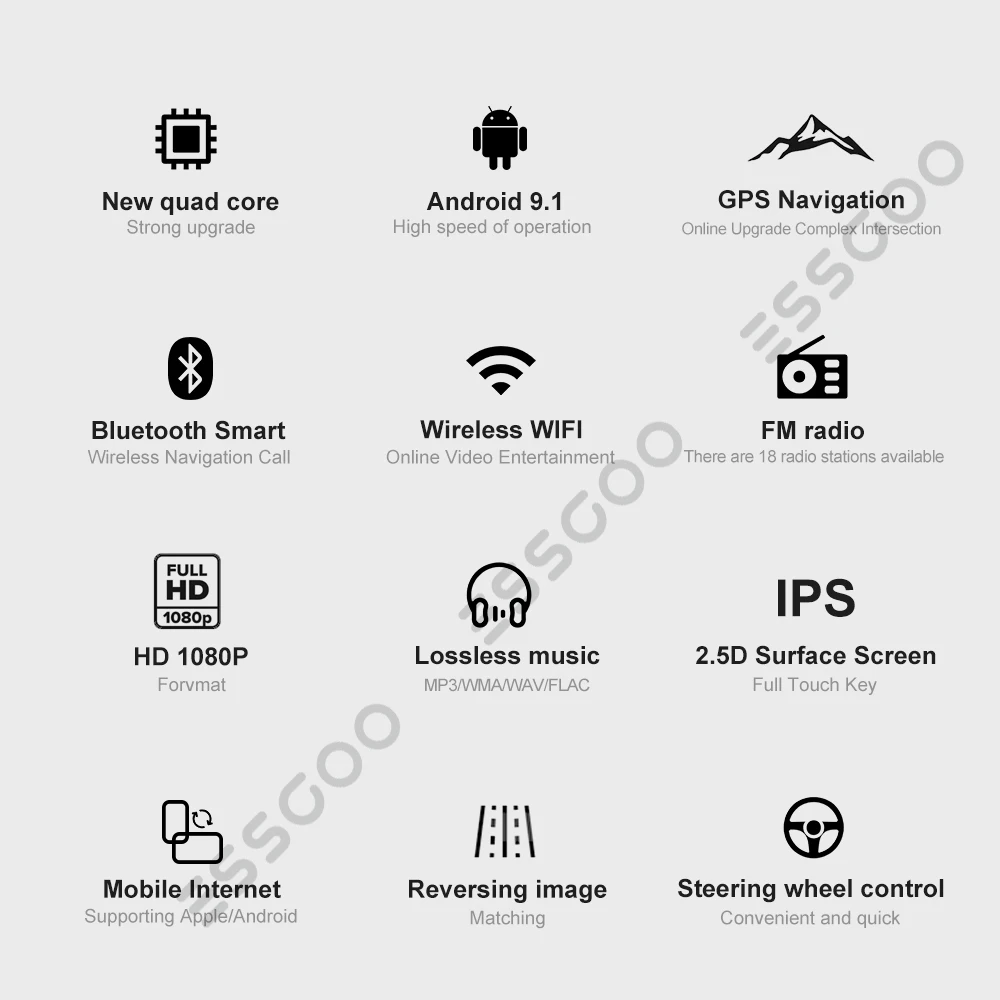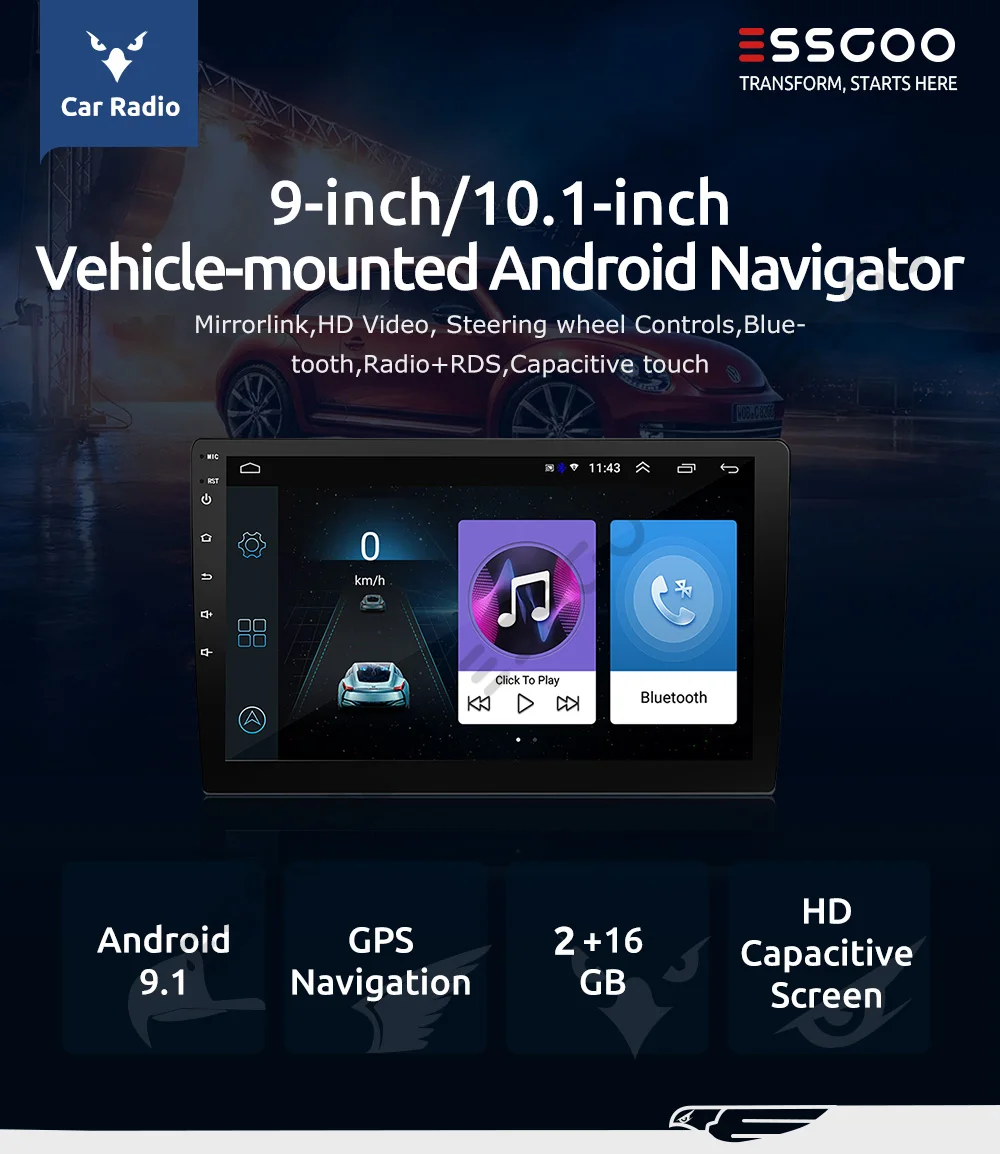 Мультимедийная магнитола ESSGOO, мультимедийный плеер на Android 9, с 10 "экраном, GPS, Wi-Fi, RDS, Bluetooth, для VW, типоразмер 2 Din