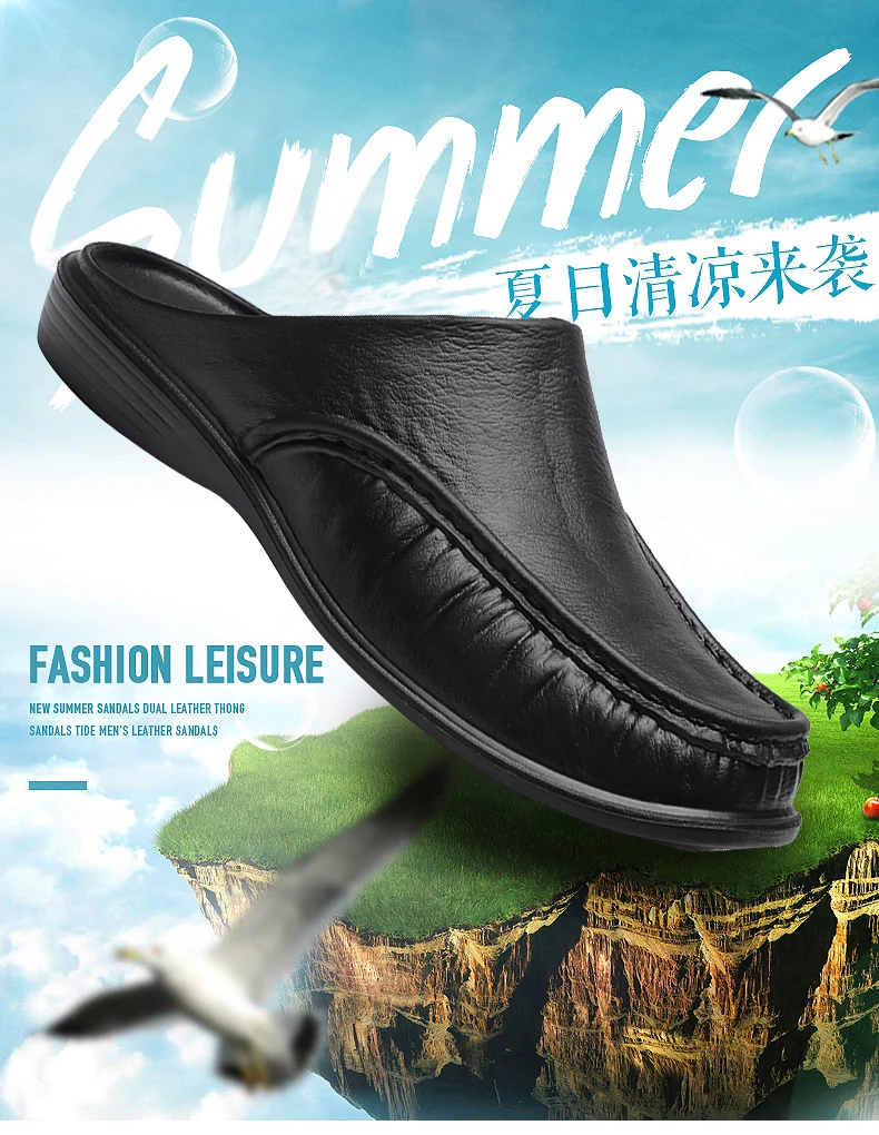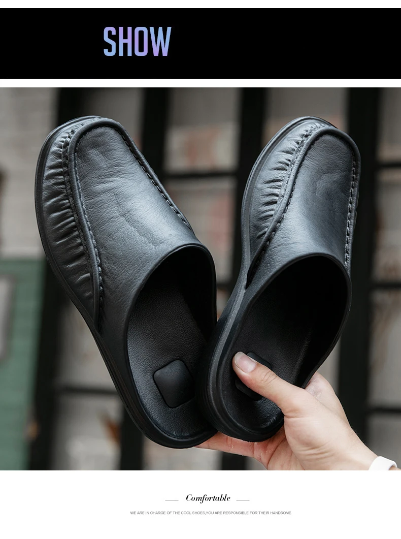 Мужские Пляжные Шлепанцы из ПУ кожи, удобная дышащая легкая обувь, сланцы с круглым носком, летняя обувь, большие размеры 40-47