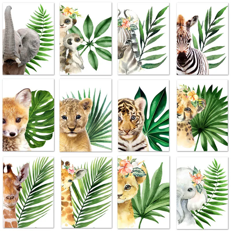 Мультяшные животные, алмазная живопись, растение, листья, Лев, Зебр...