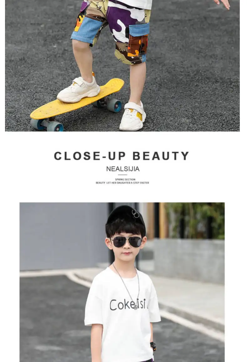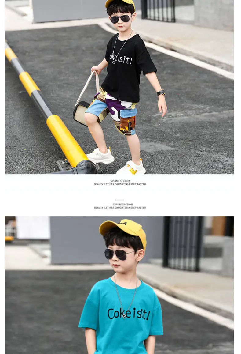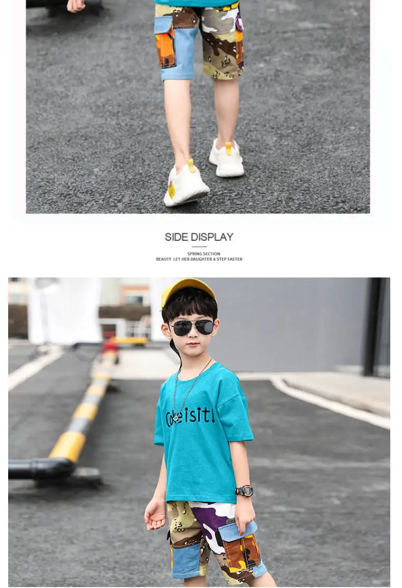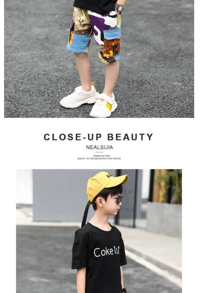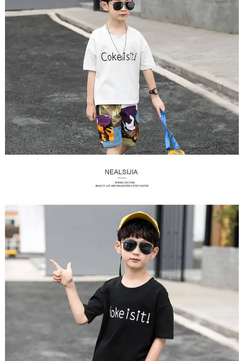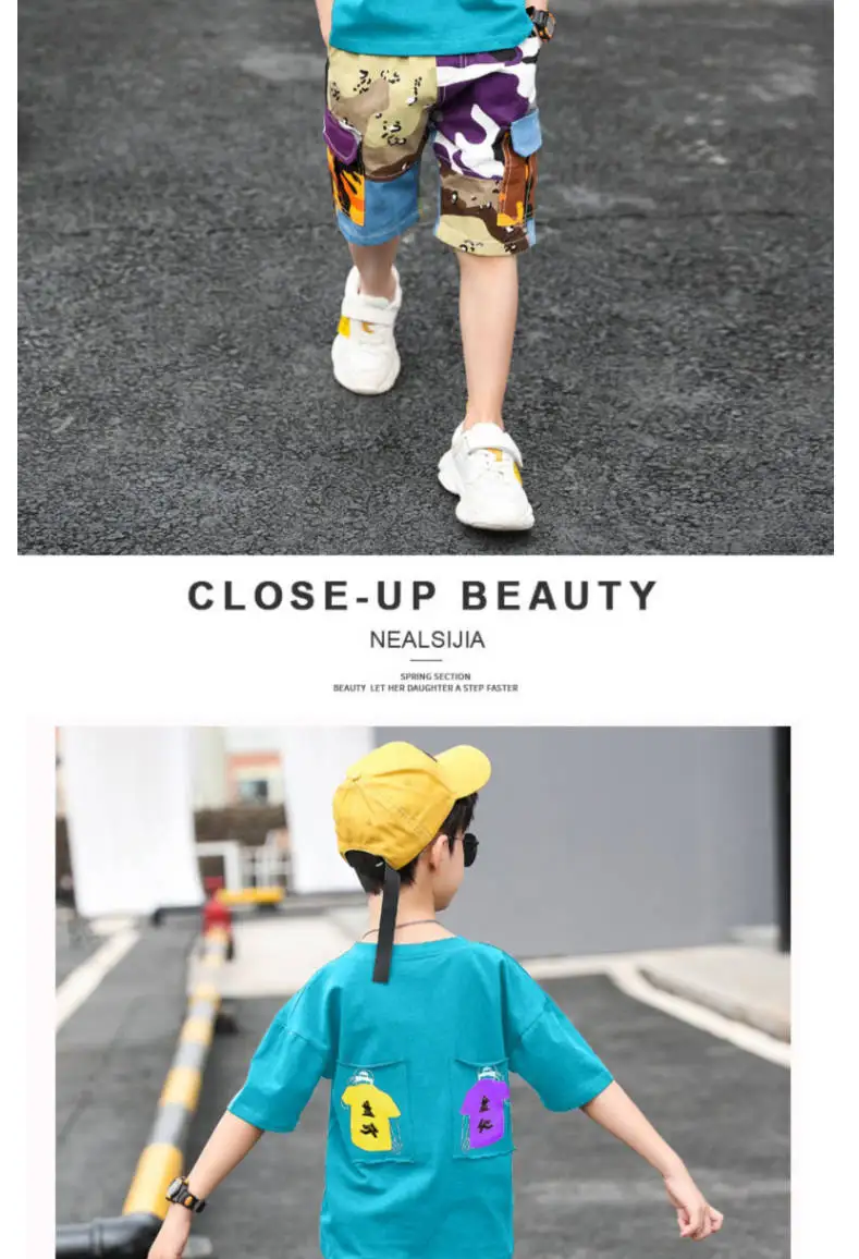 От 4 до 14 лет, одежда для мальчиков, летний комплект одежды 2021 Новый с О-образным вырезом с коротким рукавом модный пэчворк с буквенным принтом комплект одежды высокого качества