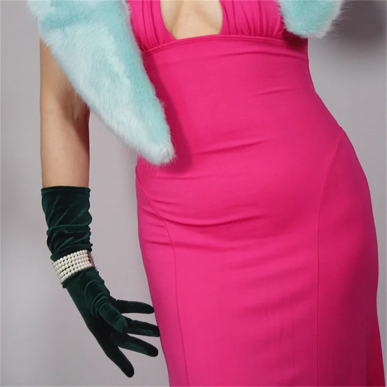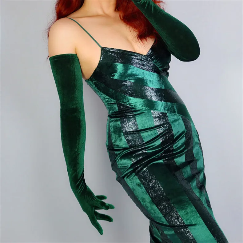Бархатные перчатки 70 см очень длинные зеленые велюровые высокие эластичные золотые бархатные женские Вечерние перчатки с сенсорным экраном для женщин WSR38