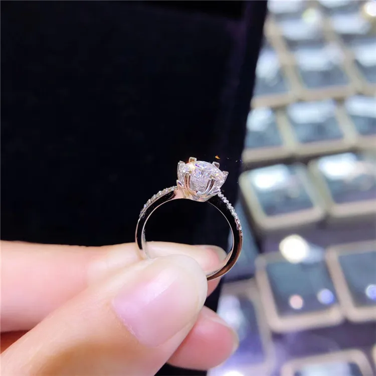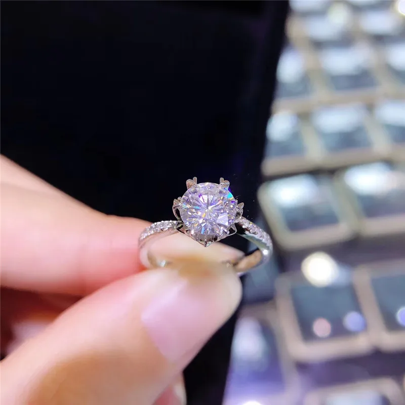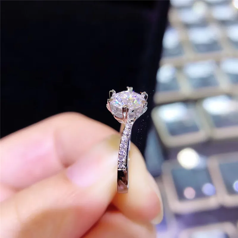 925 пробы серебро прошел алмаз Тесты идеально Муассанит 1ct кольцо ...