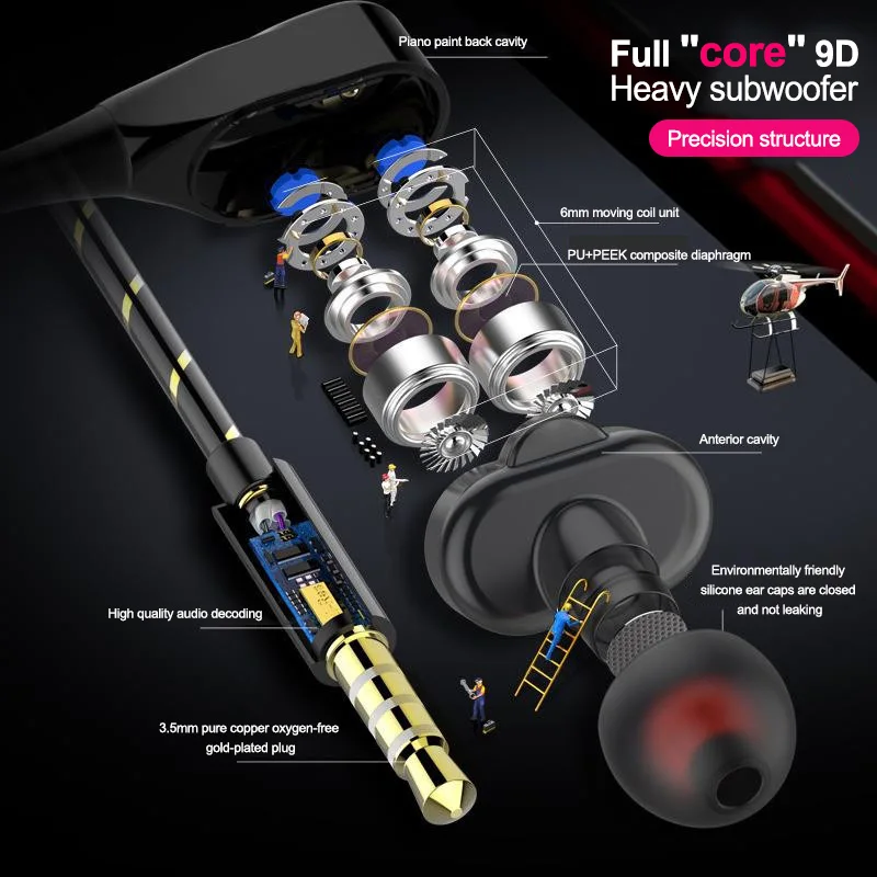 Проводные наушники с высоким басом, двойным приводом, стерео наушники-вкладыши с микрофоном, компьютерные наушники для сотового телефона