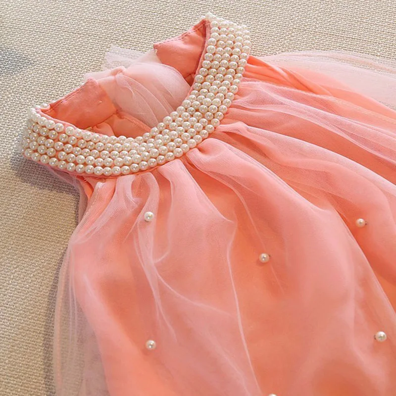 Платье для девочек Beadings, летнее, детское, без рукавов, белое, розовое, Тюлевое, для принцесс, От 2 до 6 лет