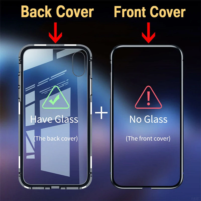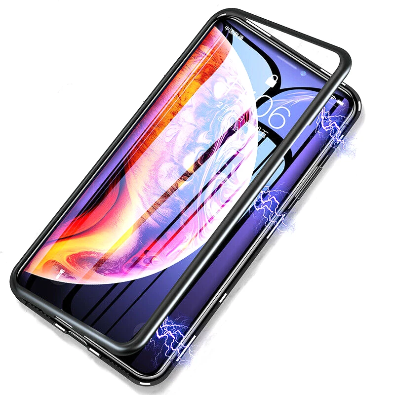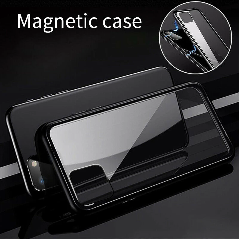 Металлический магнитный двухсторонний стеклянный чехол для IPhone 1...