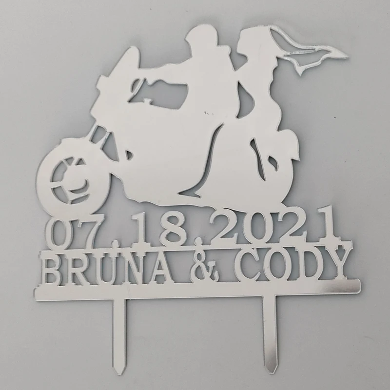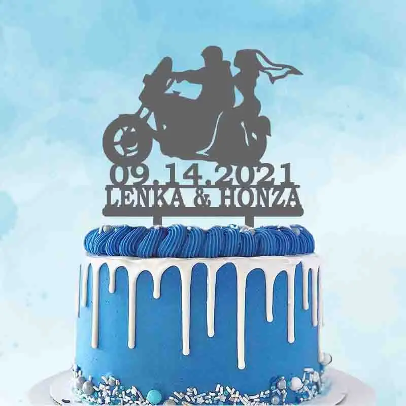 Персонализированный Топпер для свадебного торта на мотоцикле, имя пары на заказ, для жениха и невесты
