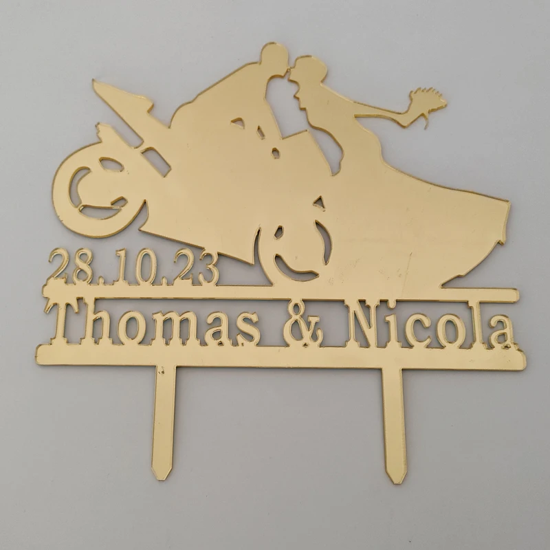 Имя пары на заказ Свадебная свидание для невесты и жениха езды на мотоцикле для свадебной вечеринки украшение торта Topper