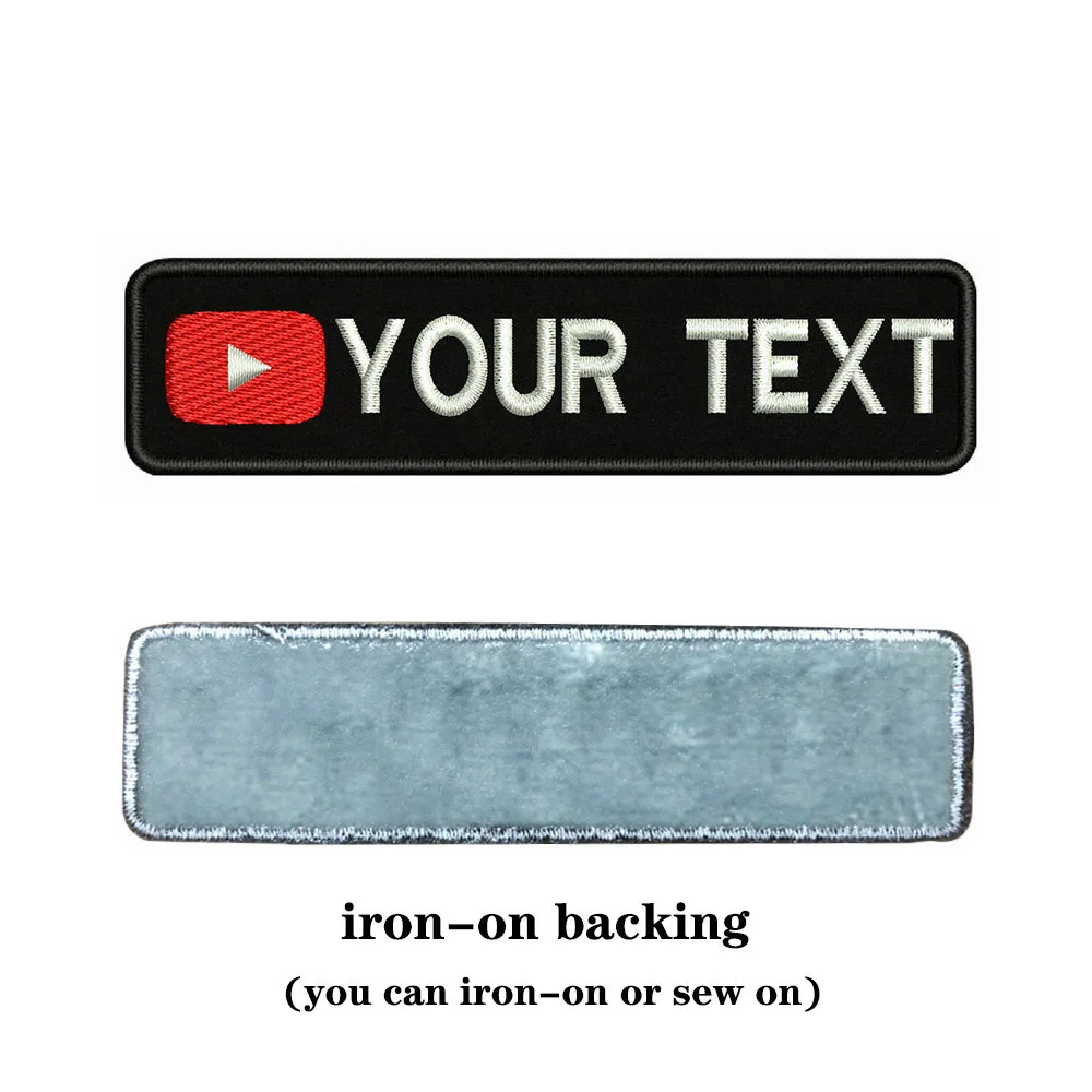 Логотип YouTube, 10x2,5 см, вышивка с именем под заказ, значок в виде строчек, нашивки на одежду
