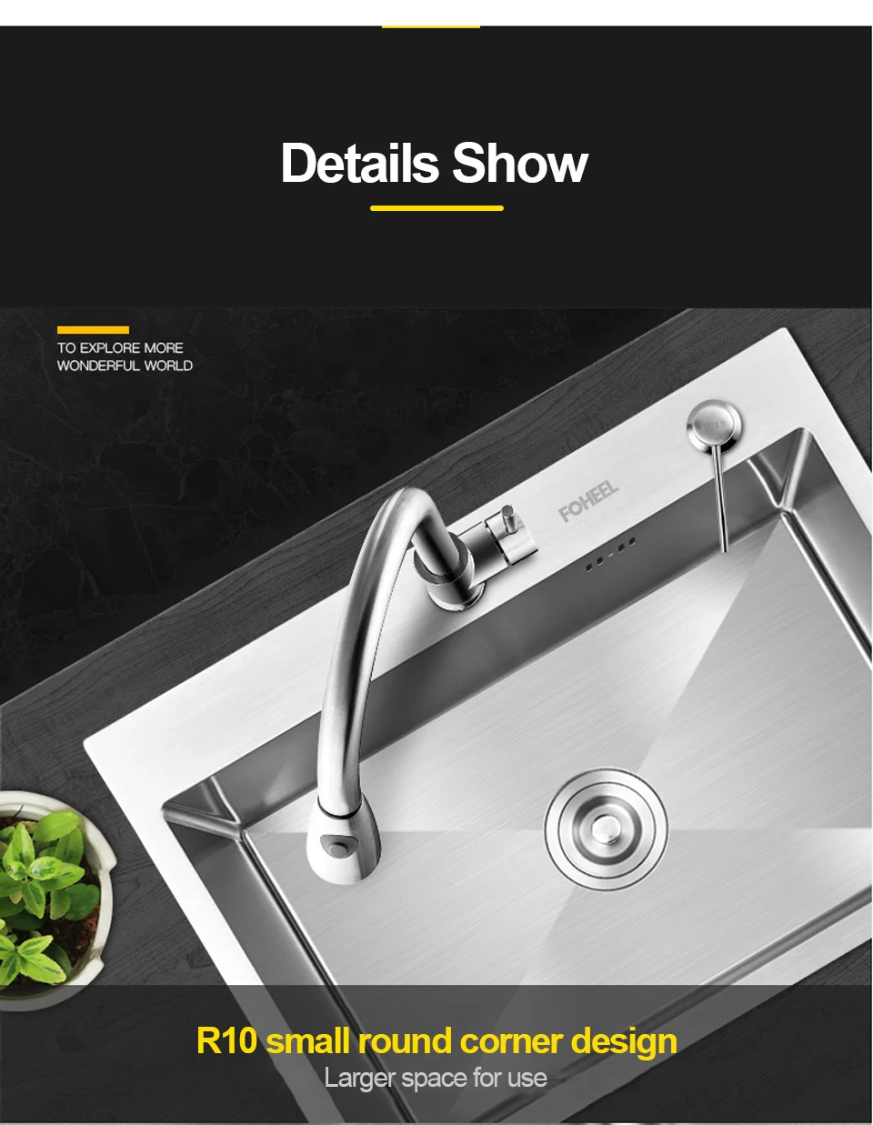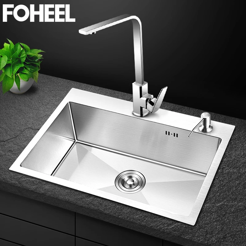 Кухонная раковина FOHEEL, с одной чашей, напольная или напольная, ручной работы, из матовой нержавеющей стали, Wastafel FKS01