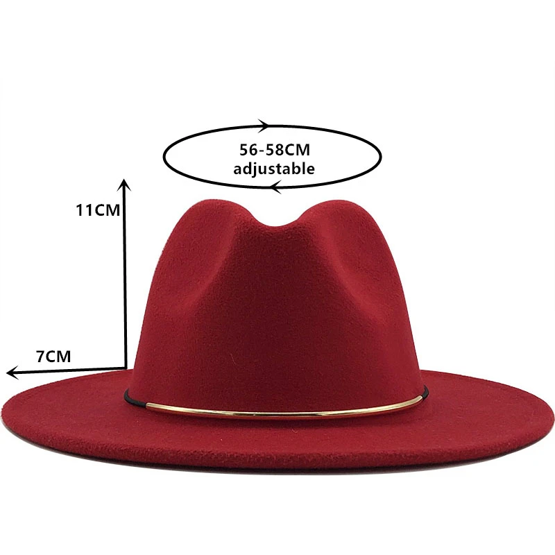 Men Women Wide Brim Wool Felt Fedora Panama Hat with Belt Buckle Ja...