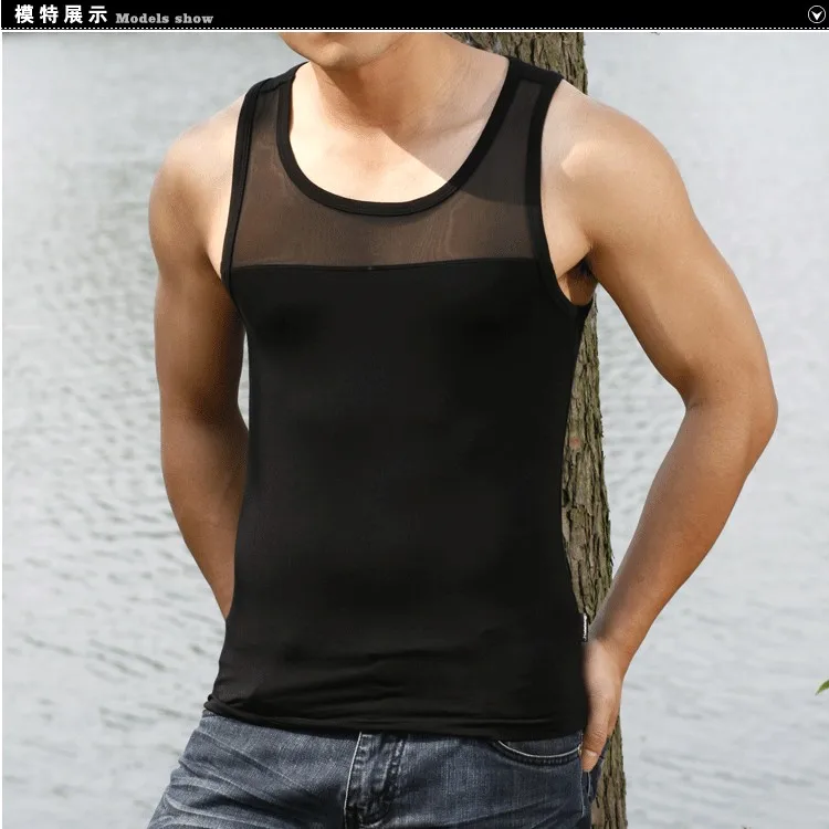 Мужской облегающий сетчатый спортивный жилет из прозрачной газовой ткани, сексуальный базовый жилет