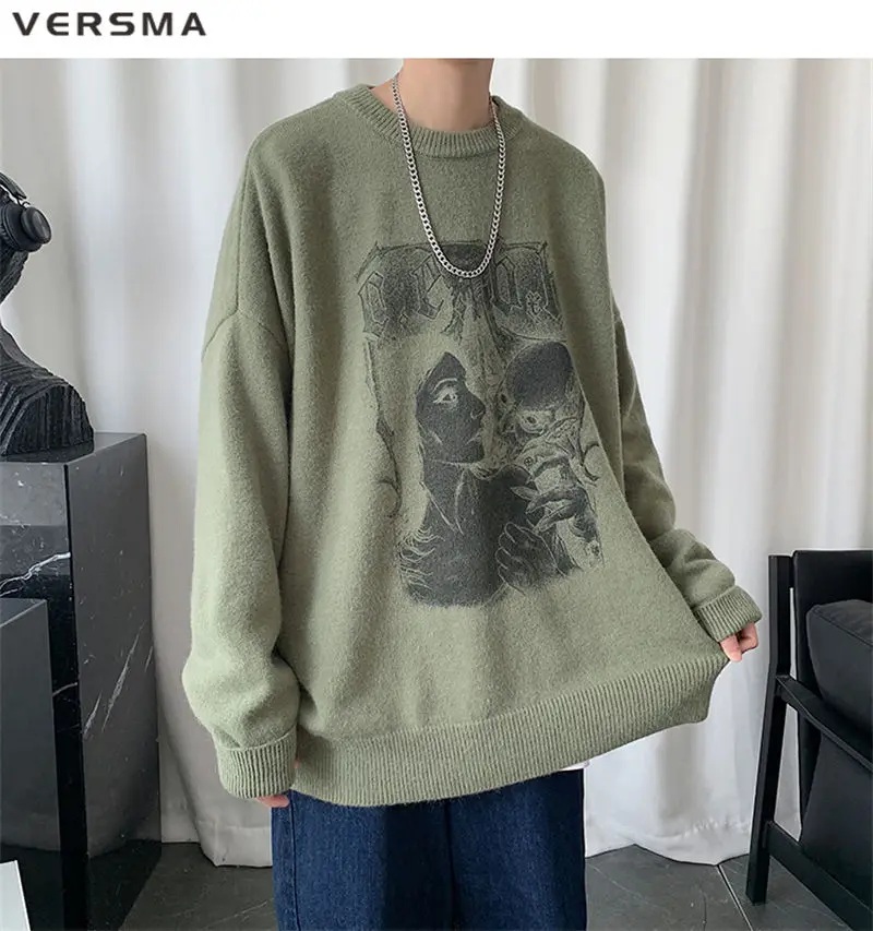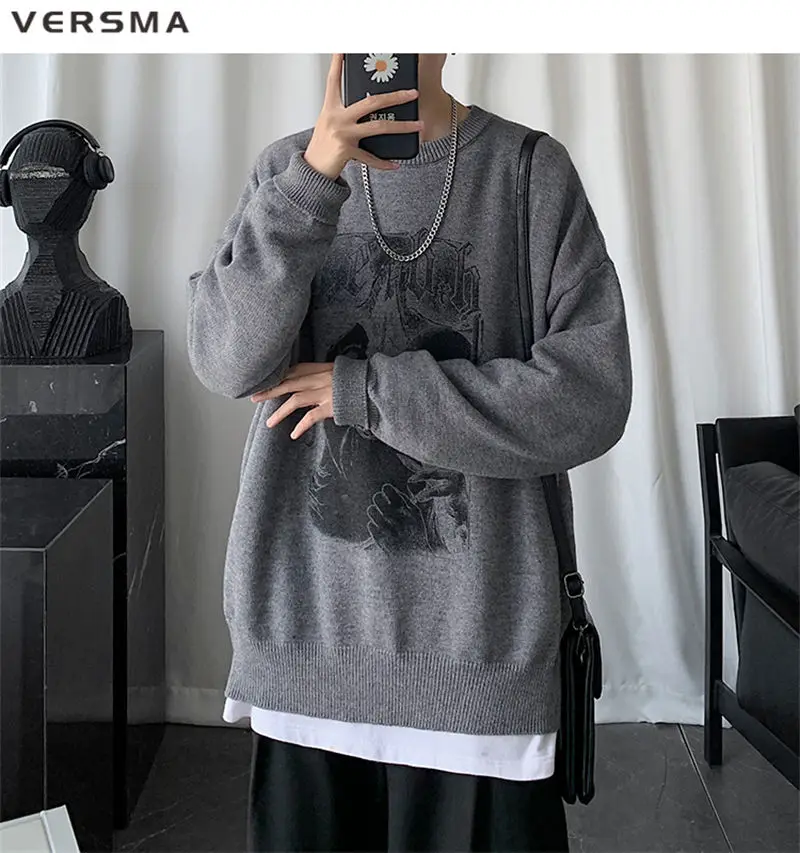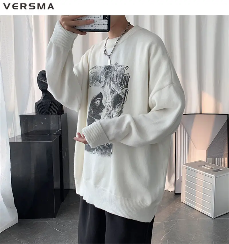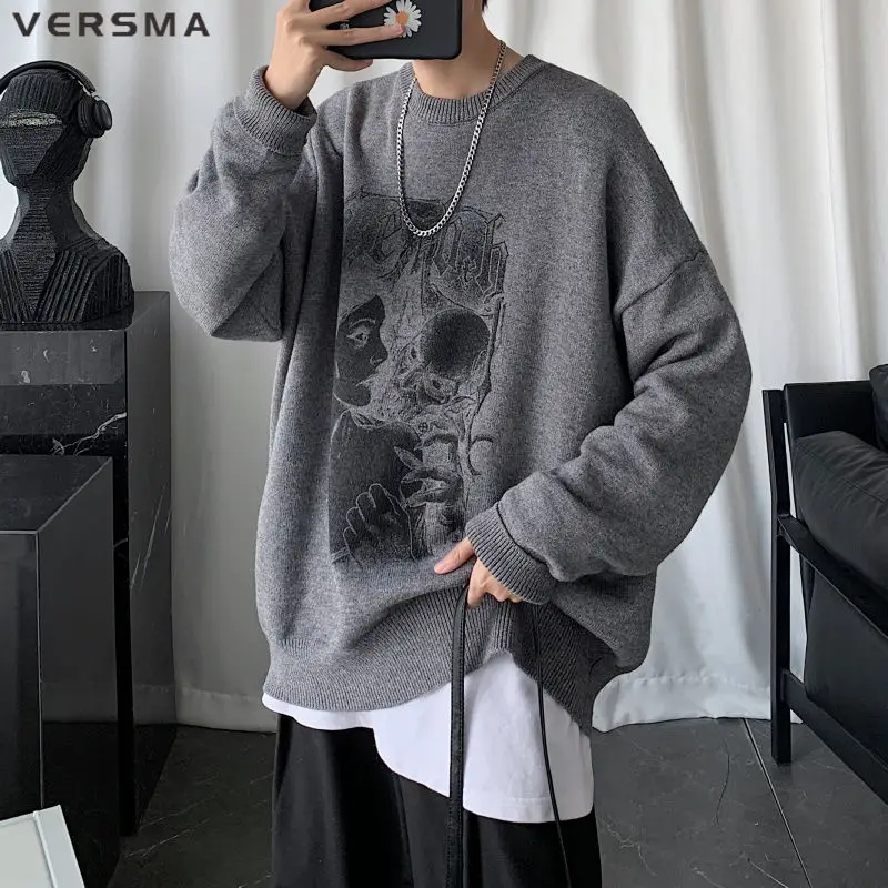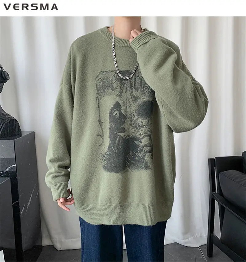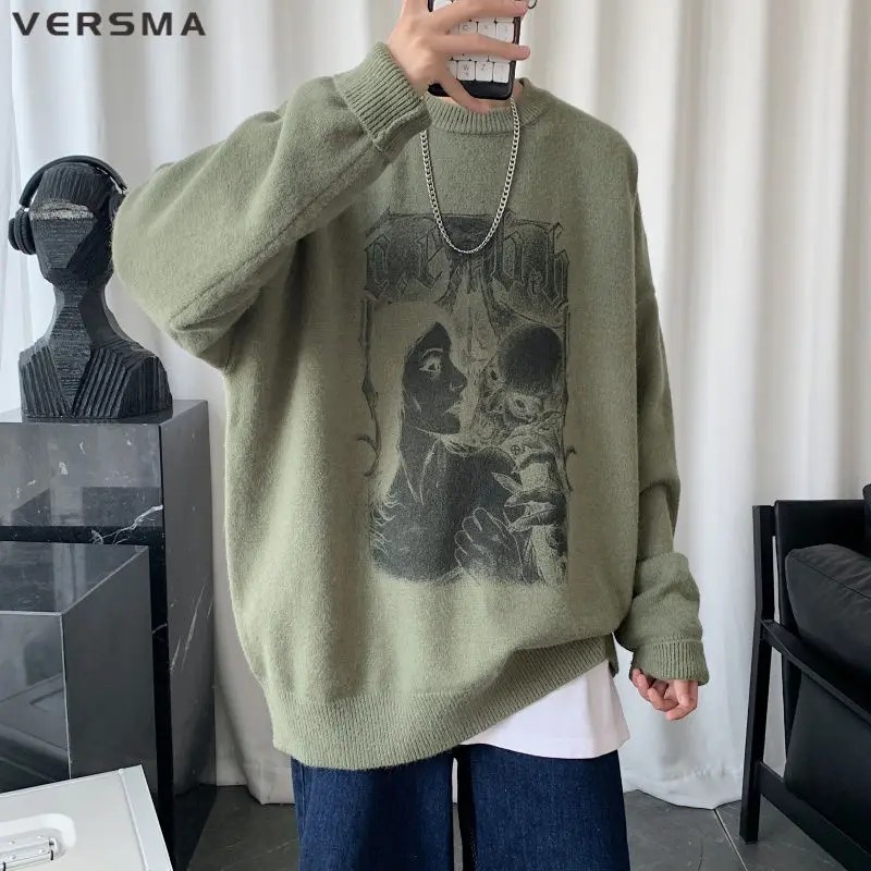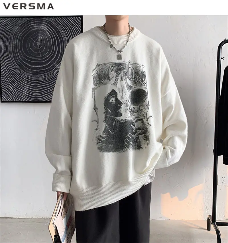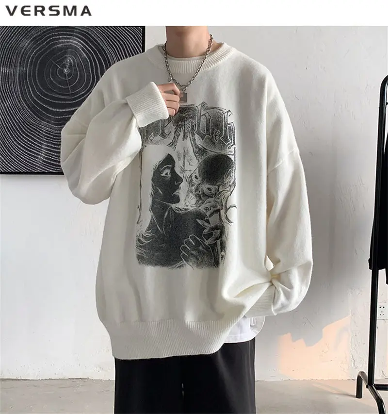 Свитер женский свободный с принтом, в стиле Харадзюку