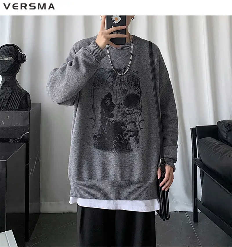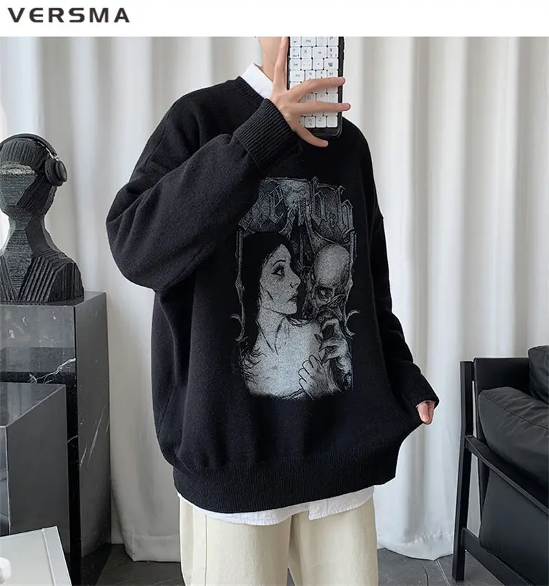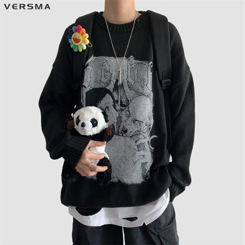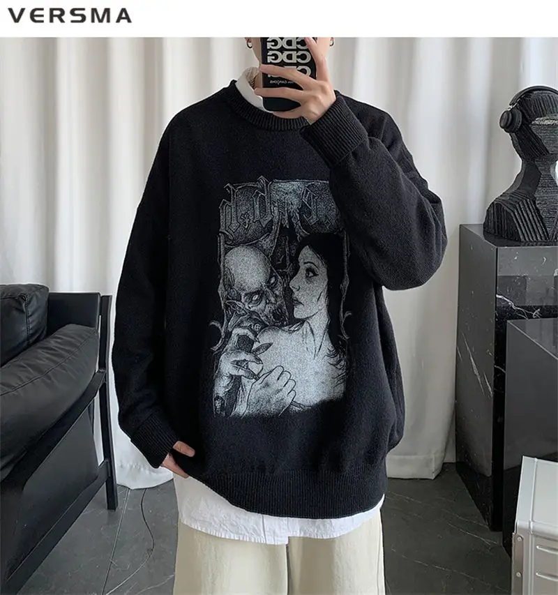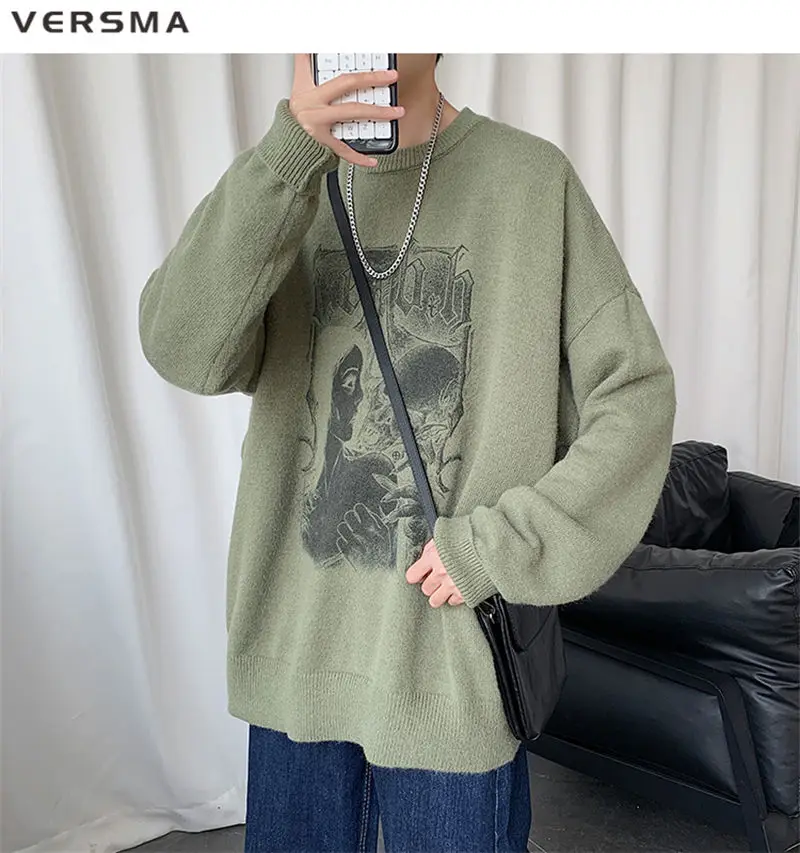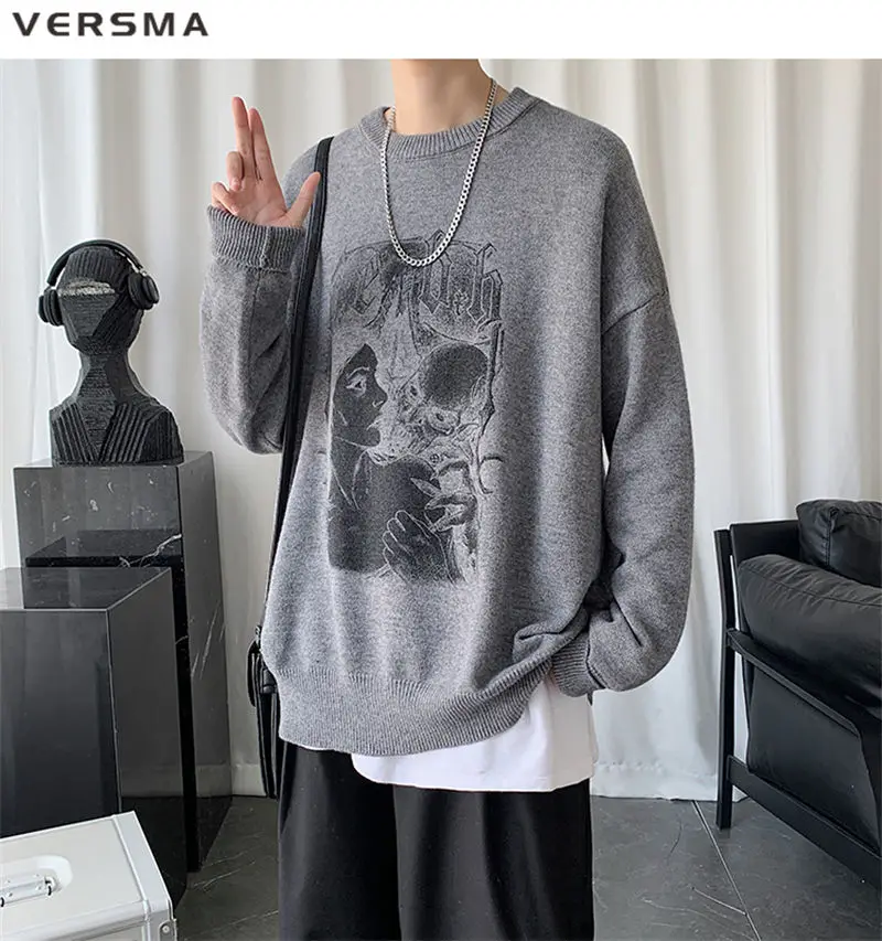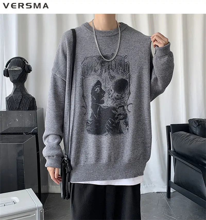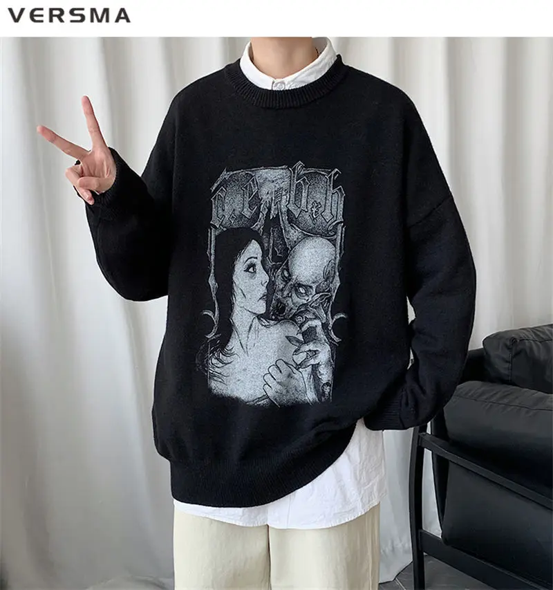 Свитер женский свободный с принтом, в стиле Харадзюку