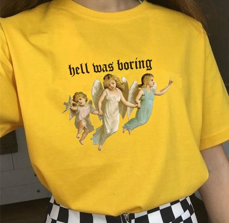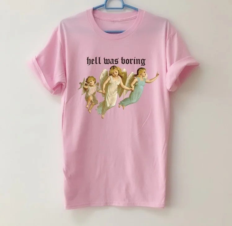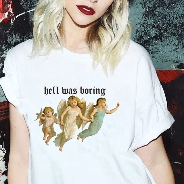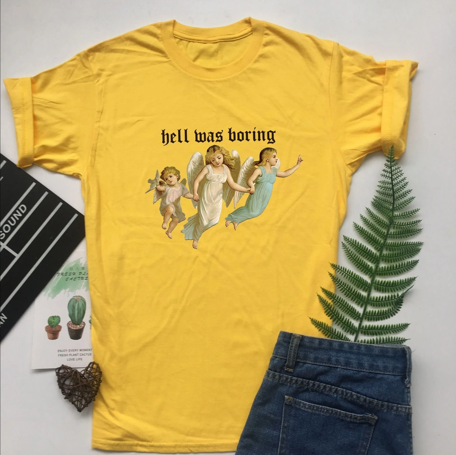 Kuakuayu HJN 1 шт. ад было скучно футболка с изображением ангела для женщин три Херувим забавные женские стильные туфли с буквенным принтом, летние хлопковые футболки с короткими рукавами для мальчиков