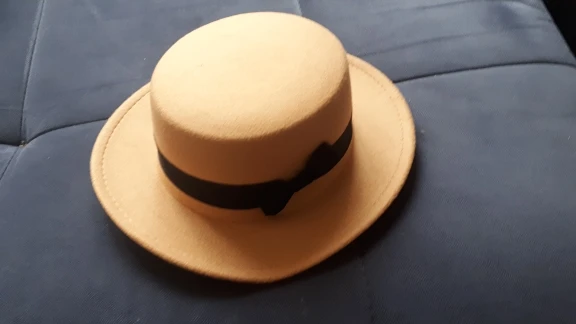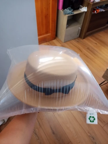 Шляпа классная, красивая. Только при транспортировке чуть помялась, упакована не в подушку к сожалению, поэтому поматя. За эти деньши очень даже достойна, сшита аккуратно.