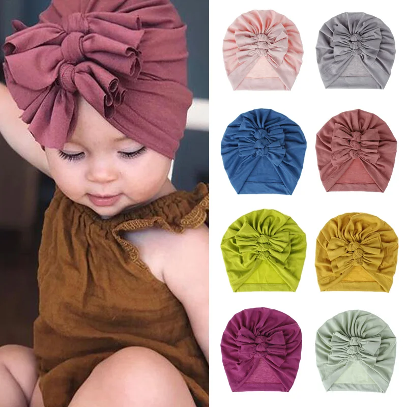 Детские шапки с 3 бантами, мягкая шапка для девочек, тюрбан, шапка ...