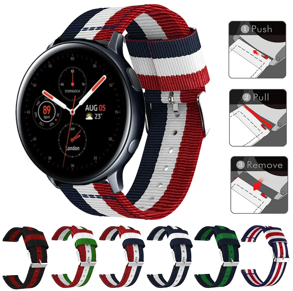 Ремешок нейлоновый для наручных часов, сменный Браслет для Samsung galaxy watch Active 2 40 мм 44 мм Active 2, 20 мм