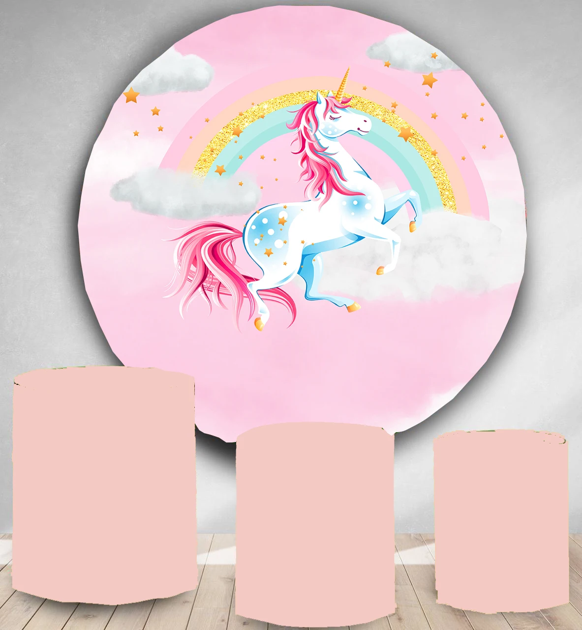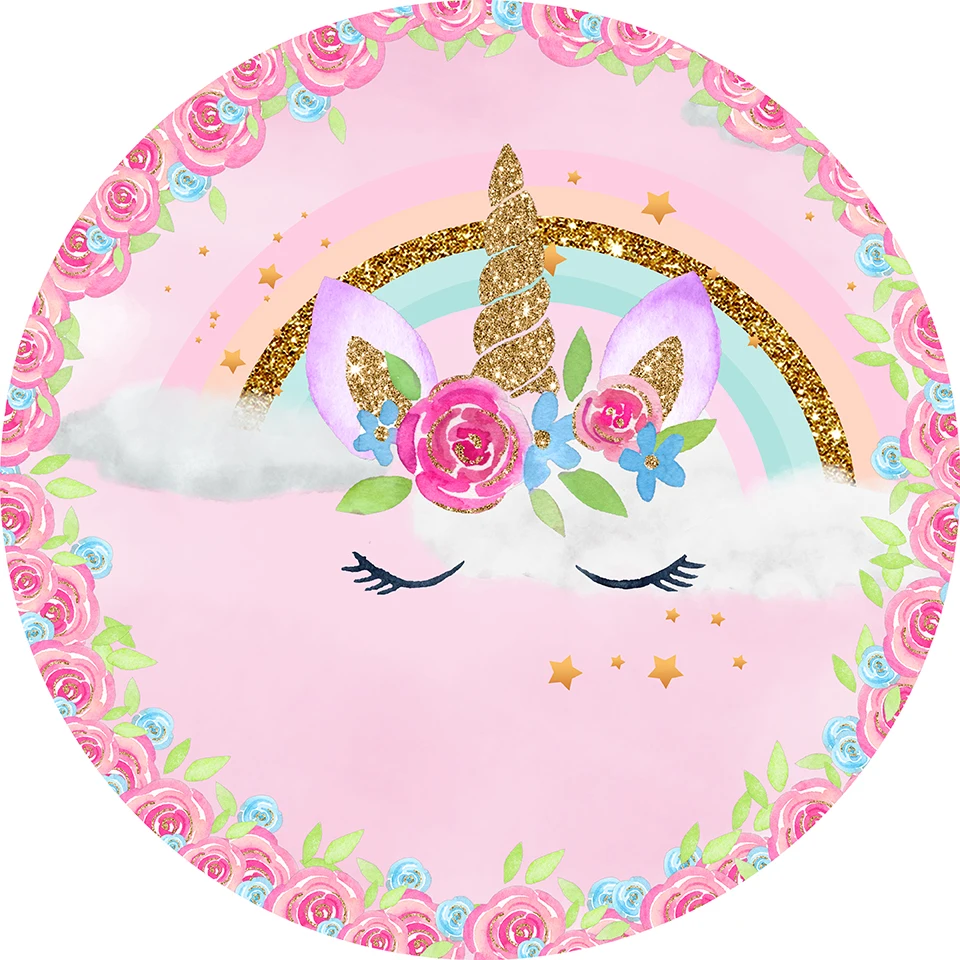 Красочный Блестящий Круглый фон с единорогом, Круглый фон для фотос...