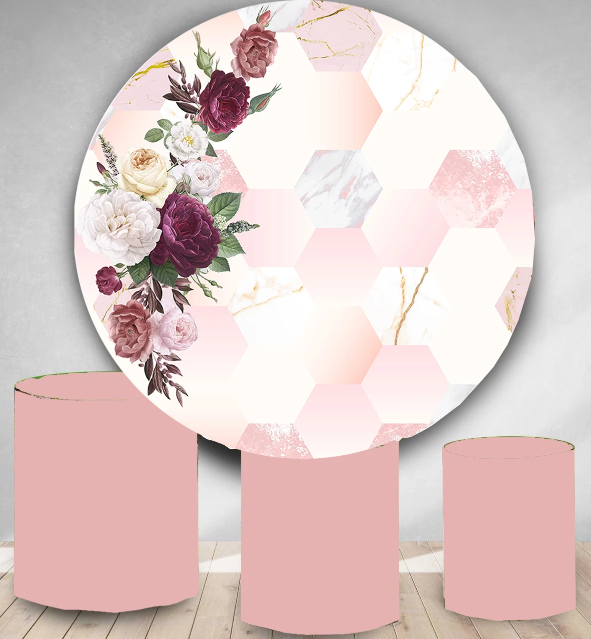 Круглый круглый фон, розовый цветочный фон для свадьбы, вечеринки, ...