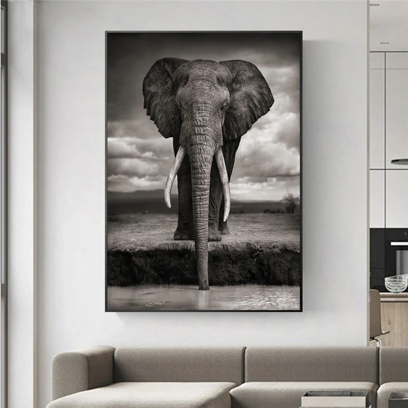 Настенная картина со слоном в скандинавском стиле, принт на холсте, настенные постеры с животными и принт для декора гостиной, настенные картины