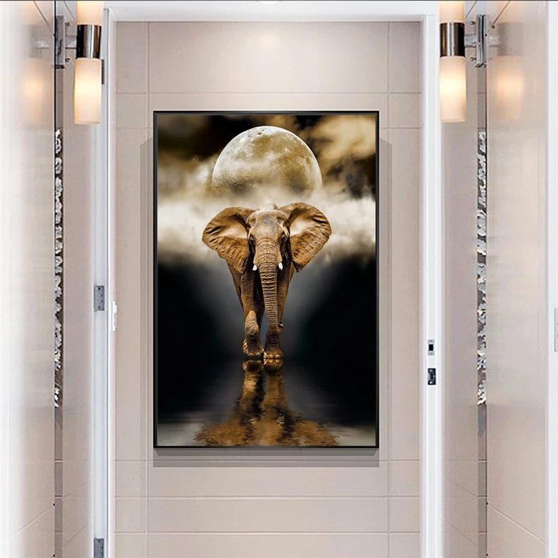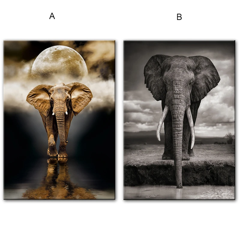 Настенные плакаты в стиле Фэнтези со слоном, животный принт на холс...