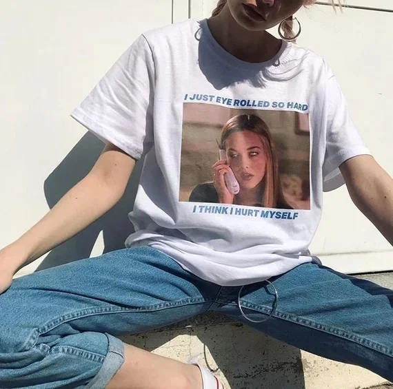 Kuakuayu HJN я только что глаз проката СОУ хард футболка Для женщин Tumblr 90s гранж белая футболка с принтами футболка по мотивам фильма трусов-боксеров