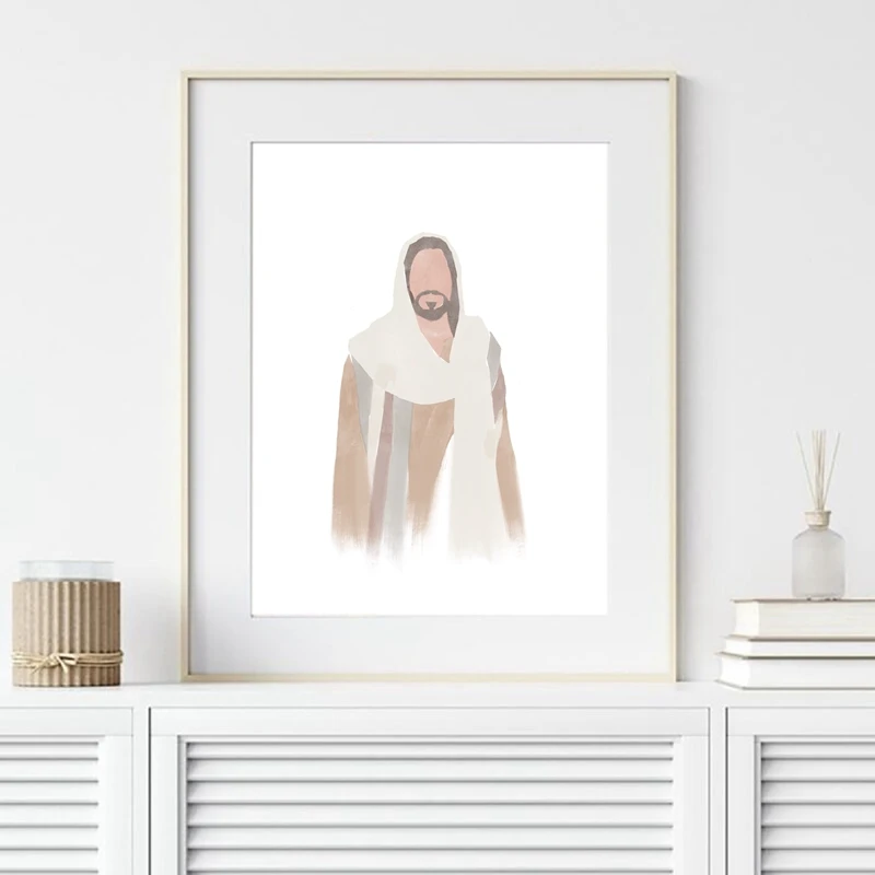 Картина с изображением Иисуса Христа, Христианский подарок, акварельная картина с изображением Иисуса на холсте, минималистичный художественный плакат с мормонами, декор для стен