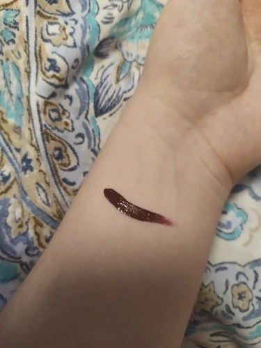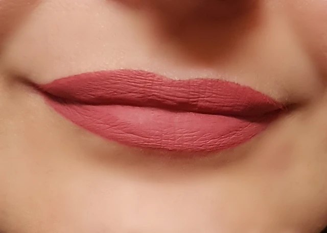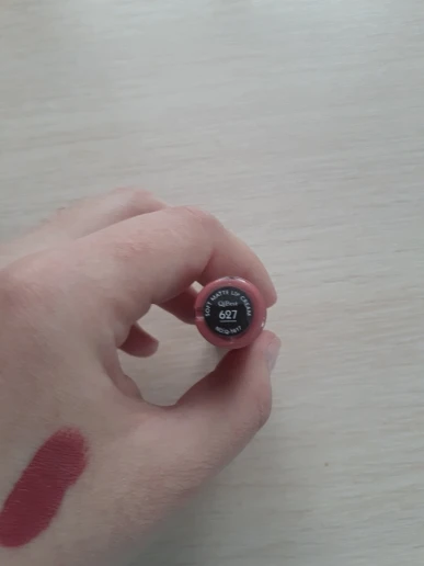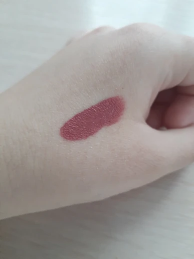 Цвет красивый, похож на тот, что на картинке. Высыхает быстро, действительно матовая. Думаю, она не стойкая, с руки стерлась легко, но не до конца. Липнет на губах. На 4/5
