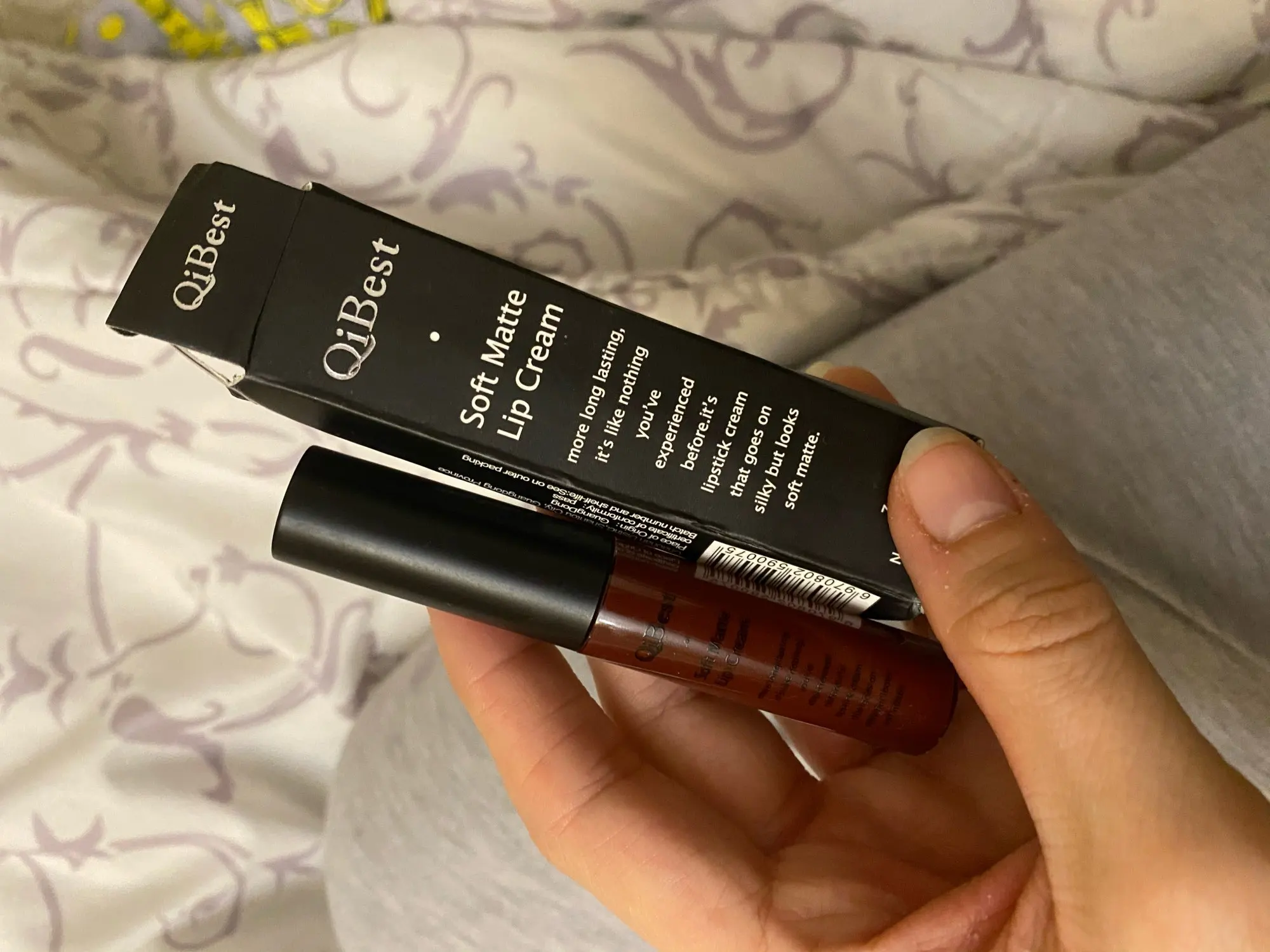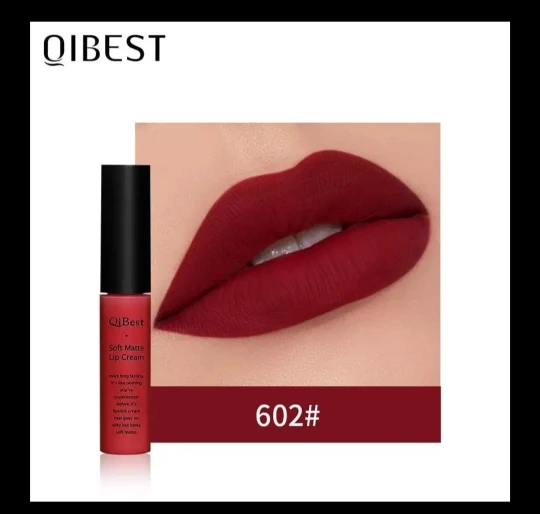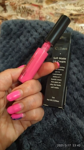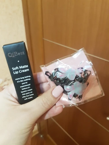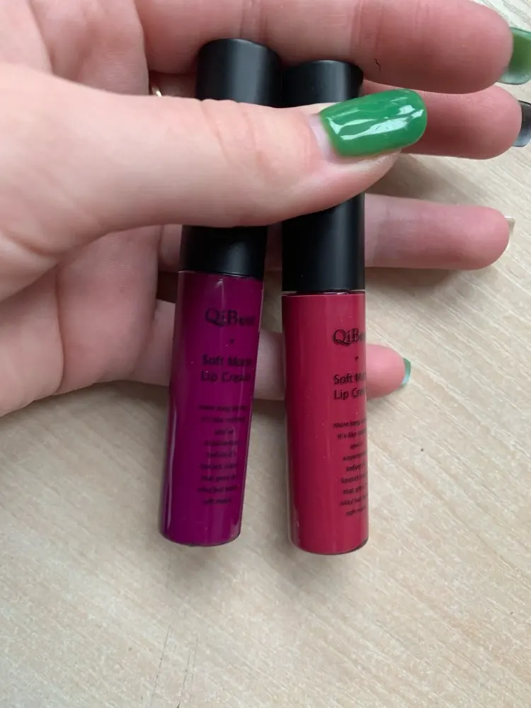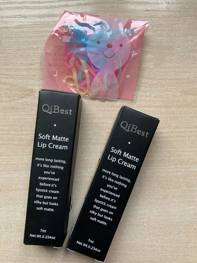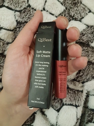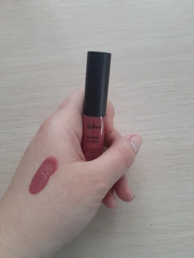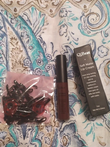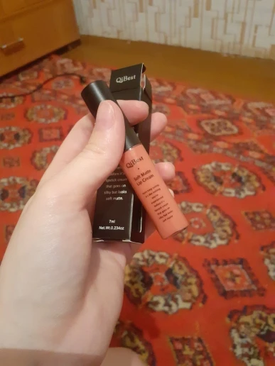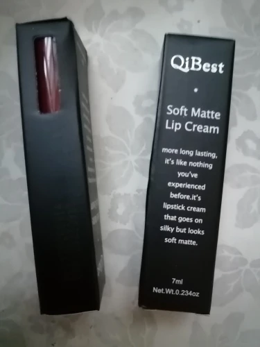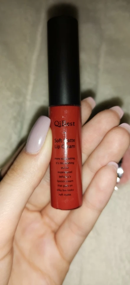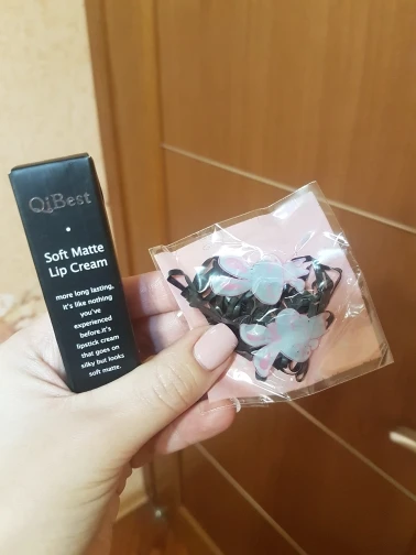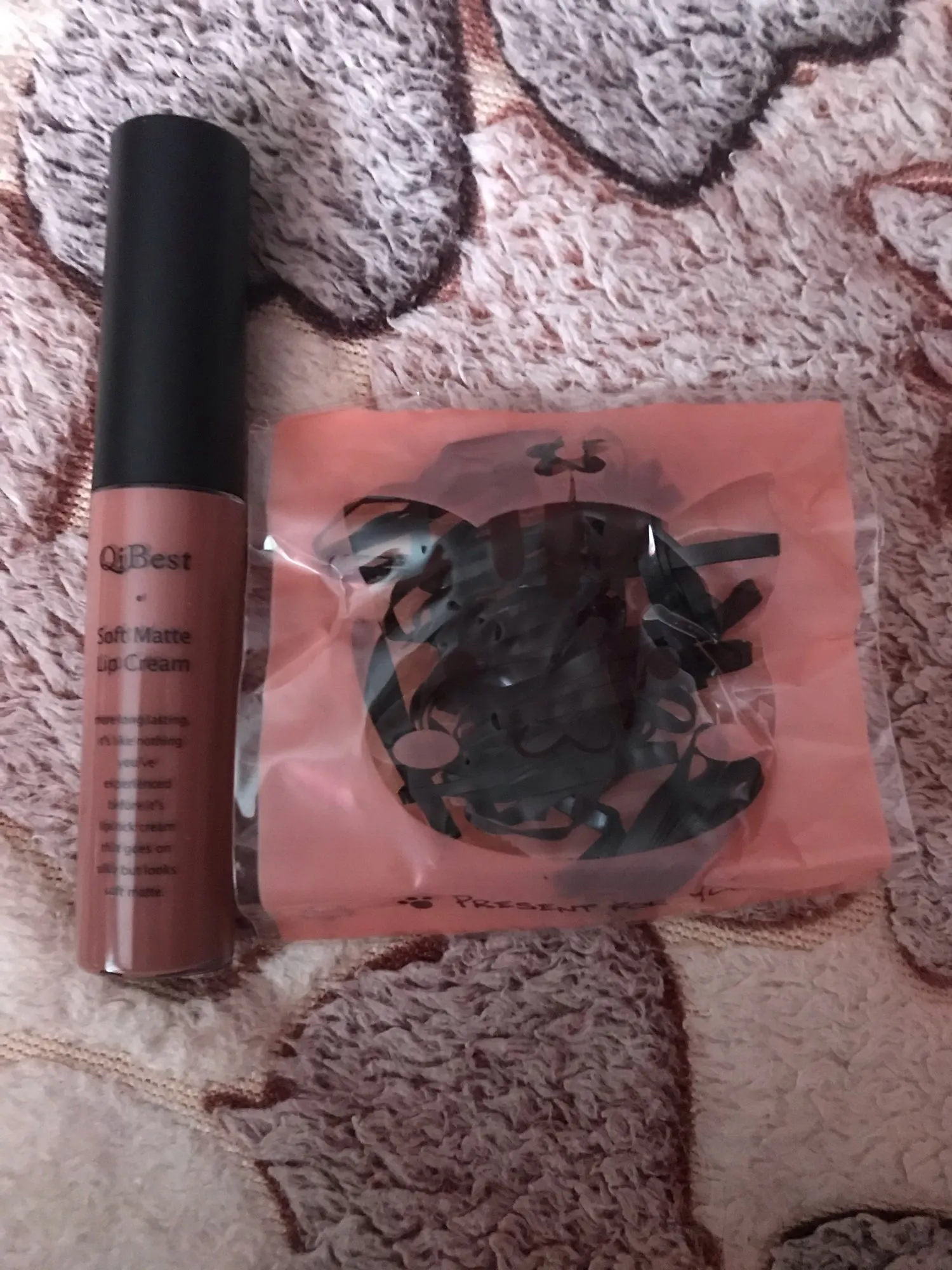 QIBEST матовый блеск для губ отличного качества. Цвет насыщенный, равномерно ложится на губы. В общем, продукт полностью соответствует описанию. Продавец внимательный и надежный, я рекомендую! Продавец отправил цветные резинки для волос в подарок, большое спасибо!