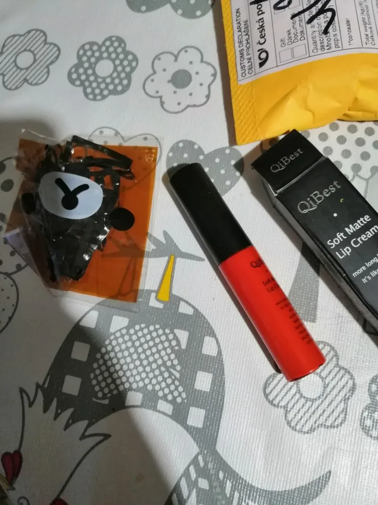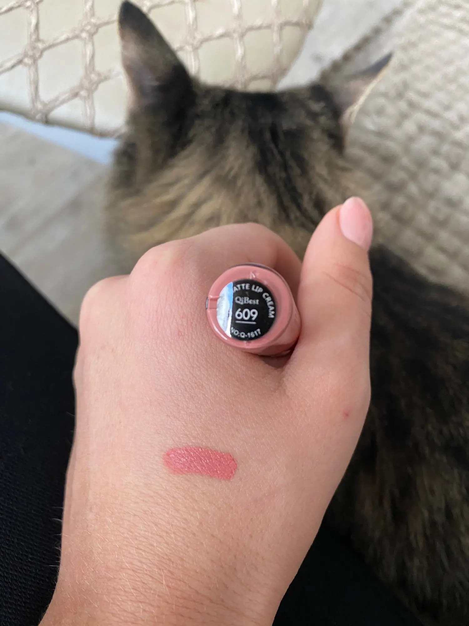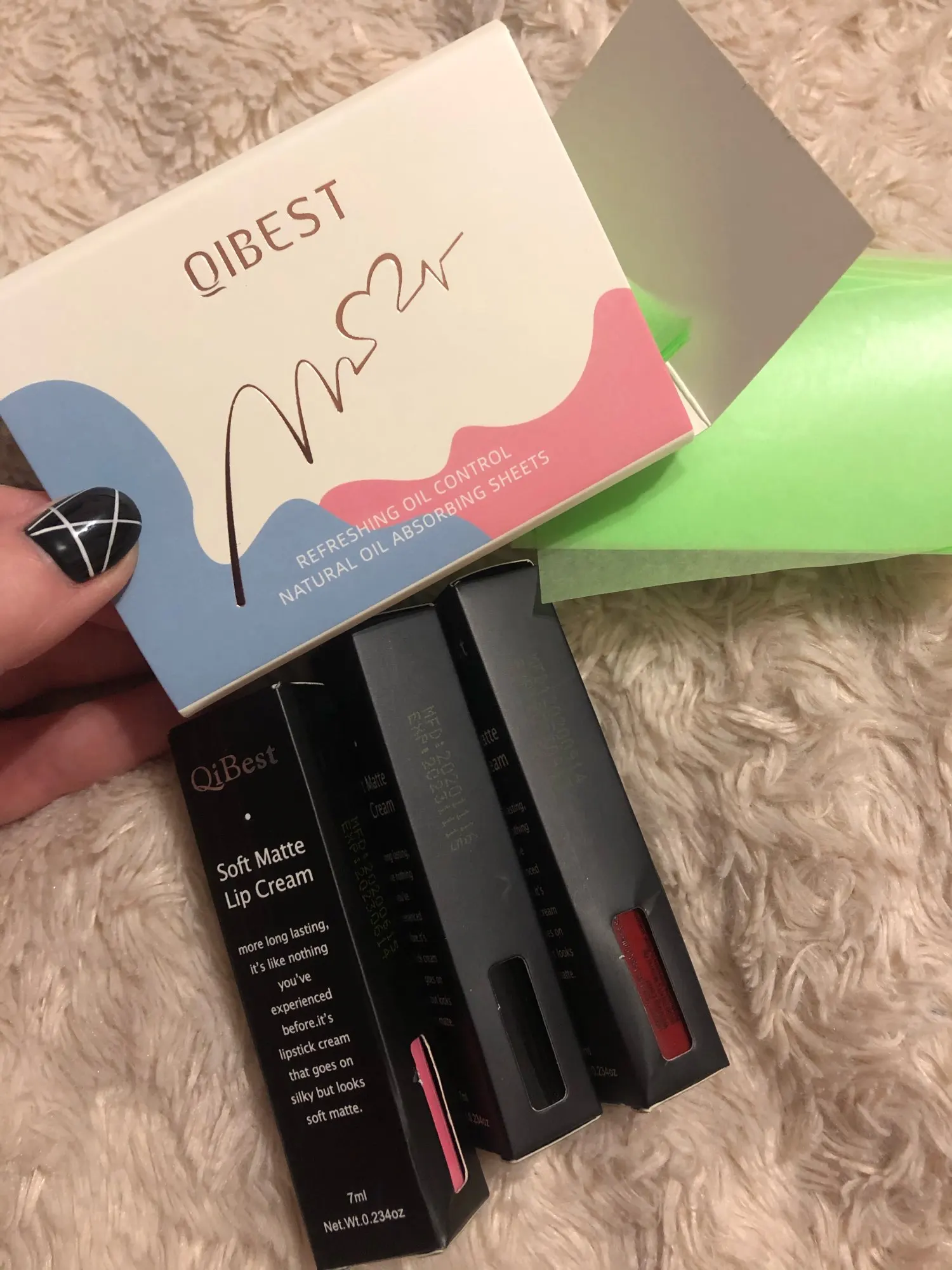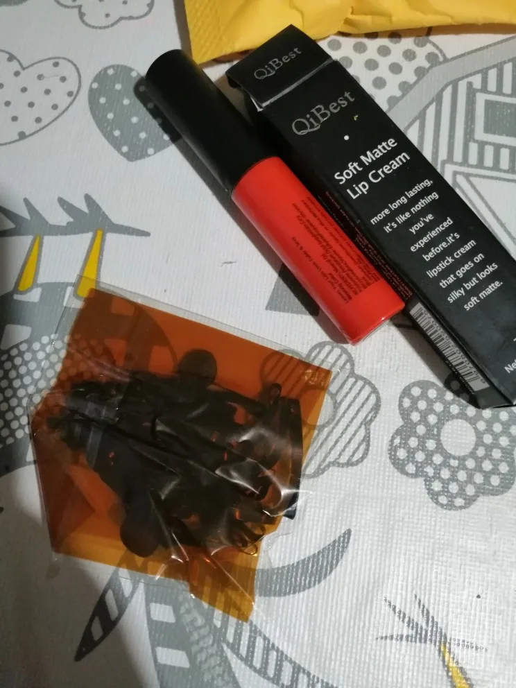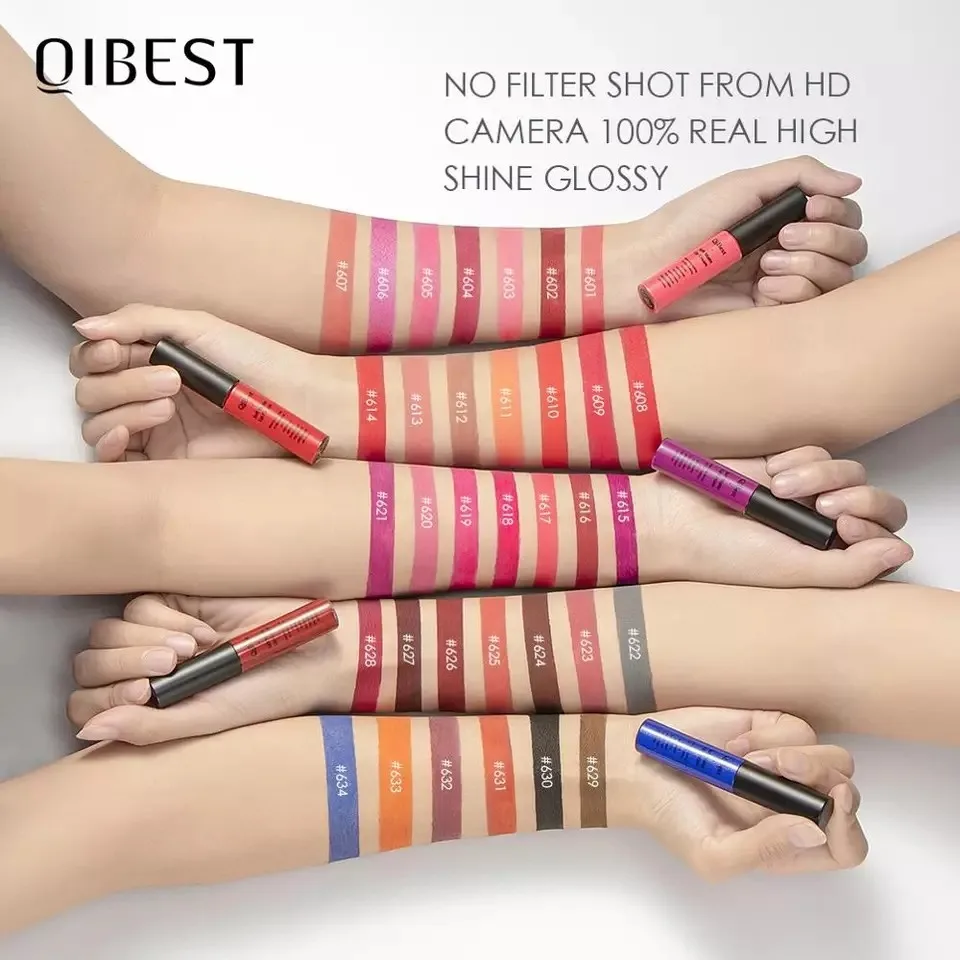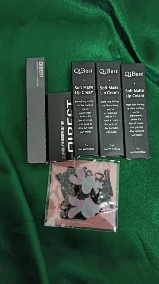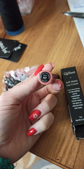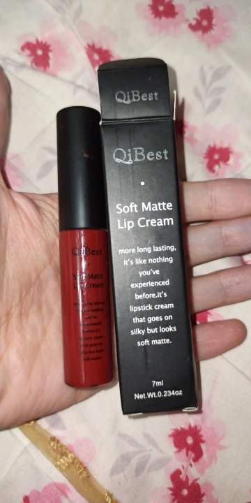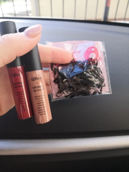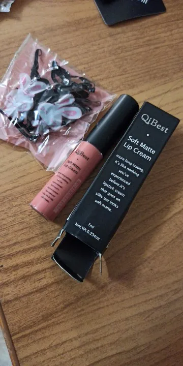 QIBEST матовый блеск для губ отличного качества. Цвет насыщенный, равномерно ложится на губы. В общем, продукт полностью соответствует описанию. Продавец внимательный и надежный, я рекомендую! Продавец отправил цветные резинки для волос в подарок, большое спасибо!