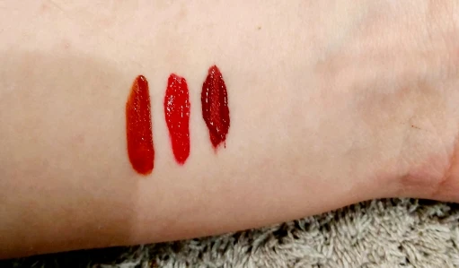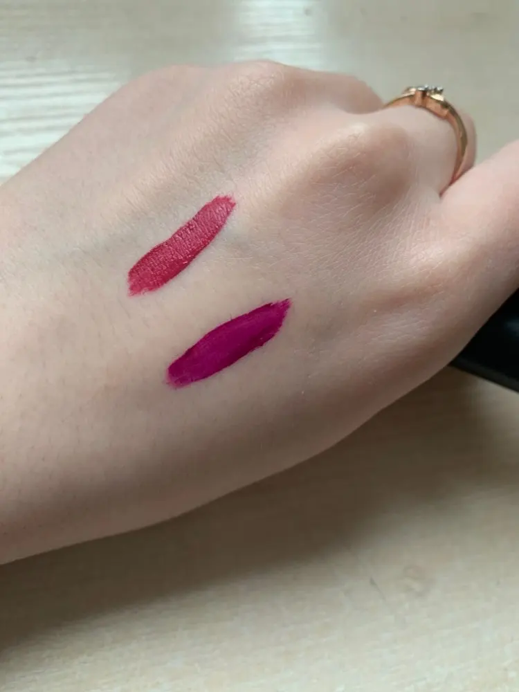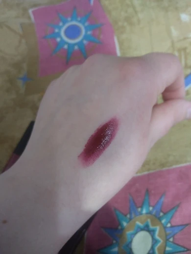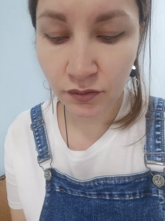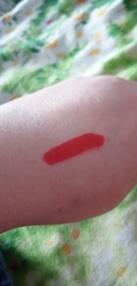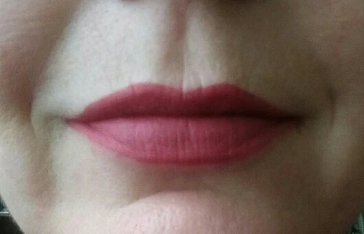 Так, оттенок не помню какой, но цвет пришёл как и хотела, сразу затестила . 1е фото, наносится приятно, не комкается, тонким слоем , губки слегка слипаются, но высыхает быстро. Неприятного запаха или привкуса нет. 2е фото я поела яблоко , воды попила, губы облизывала и тд. Ну стойкость норм , даже смывается плавно . Для 100 рублей это супер , я считаю .