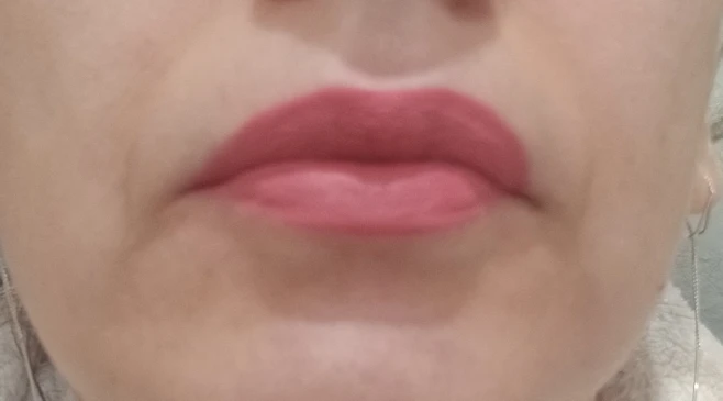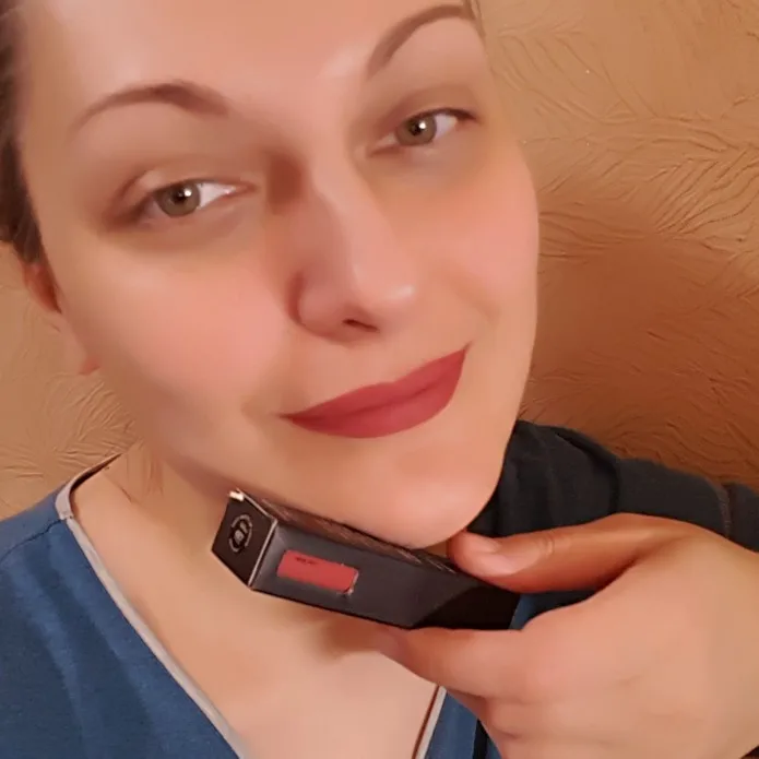 Помада красивого цвета,соответствует оттенку на фото.Текстура приятная и наносится классно,НО нет прям полной матовости и помада липкая прям сильно.Больше заказывать не буду,губы неприятно прилипают ко всему...хотя,если вам надо прилипиться к какому нибудь мужчине,то самое то))