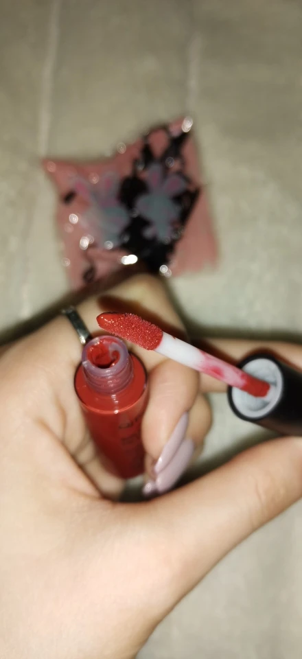 Помада супер, давно хотела себе что-то из красного, цвет яркий, стойкий, смывала мицелярной водой для водостойкого макияжа и то еле оттерла, супер! Помада пахнет чем-то сладким, приятно. Пришла вместе с другими помадами от этого продавца, к ним подожили бестки для век, как раз хотела заказать к новому году похожии, а тут прям повезло)) Рекомендую, закажу еще и другие.
