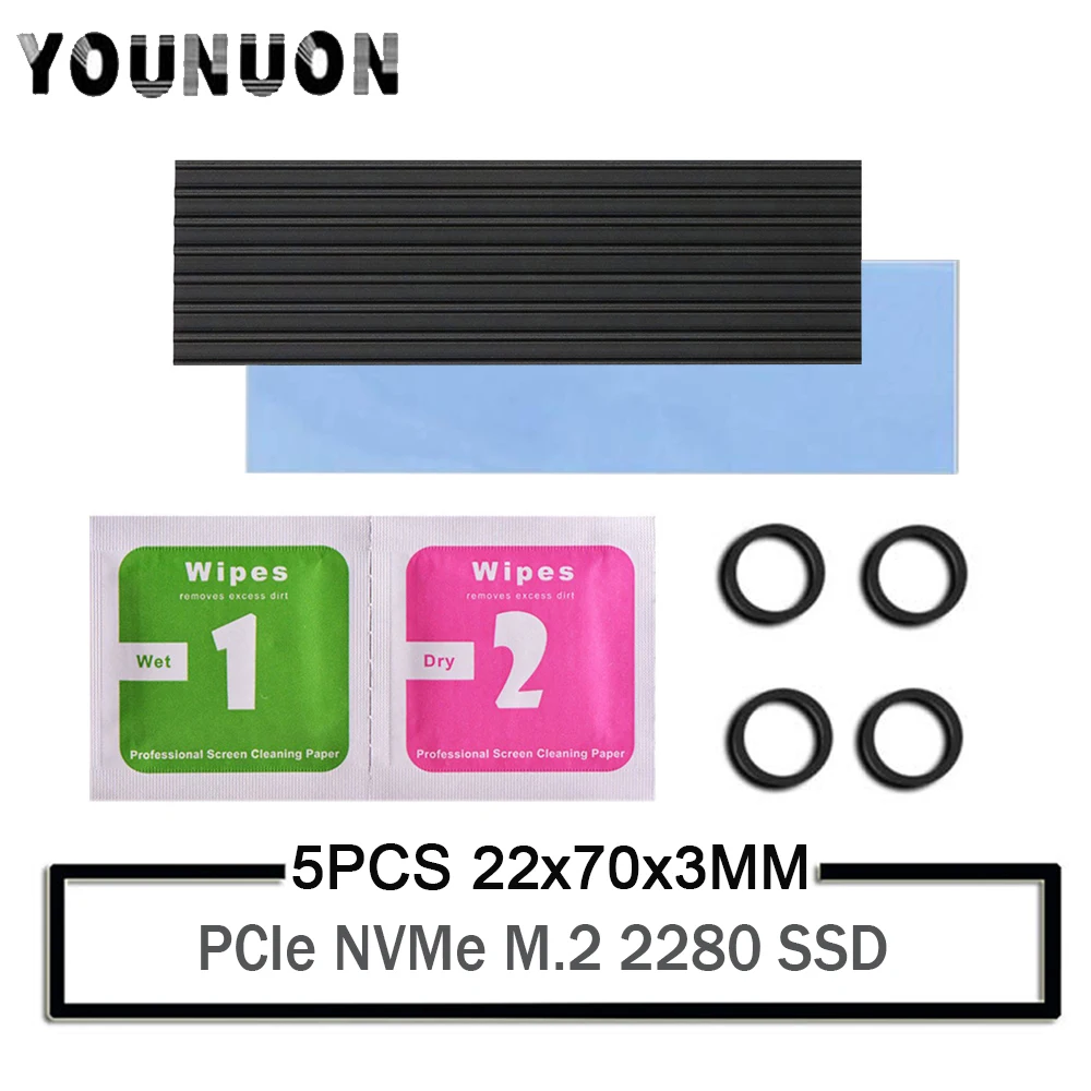 Радиаторы YOUNUON для PCIe NVMe M.2 2280 SSD с силиконовой термопрокладкой, 5 шт.