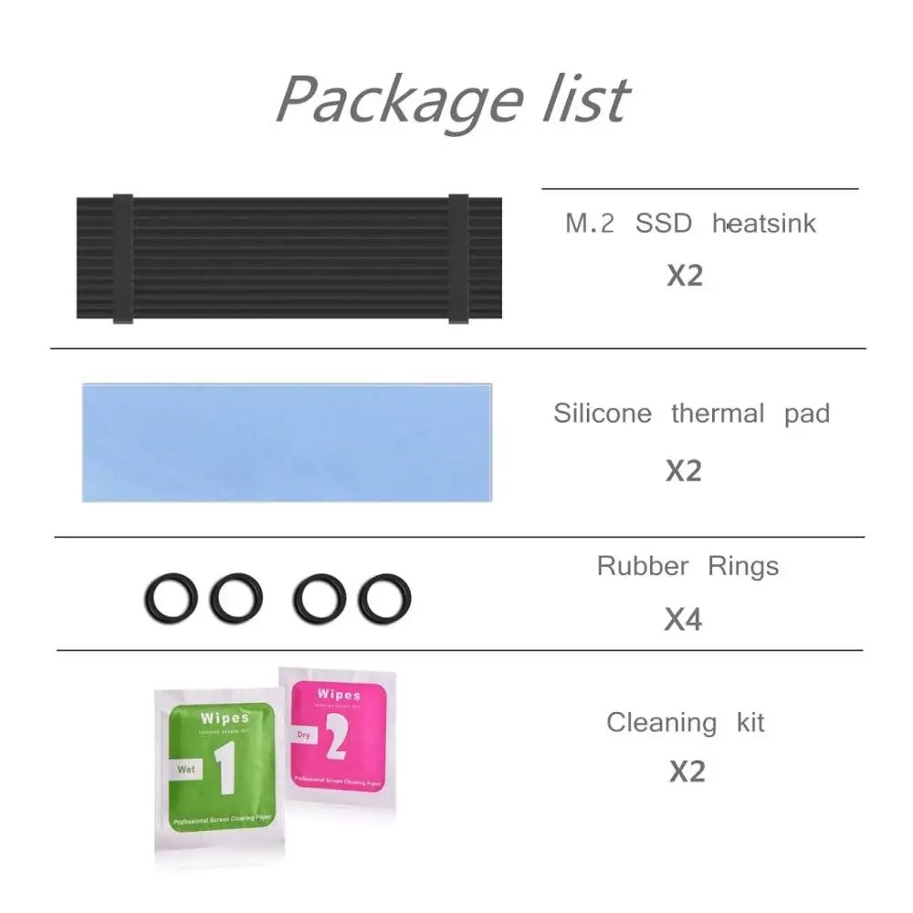 Универсальная Посадка: Совместимость с ноутбуками и настольными компьютерами. Поддерживает NGFF PCIe NVMe M.2 2280 Размер SSD: 0,87 x дюйма. (22x80 мм), идеально подходит для Samsung 850 EVO, 860 EVO, 960 EVO, 970 EVO, 950 PRO, 960 PRO, 970PRO и т. д. Материал основного корпуса: алюминиевый сплав, посеребрение, обработка поверхности анодным окислением, теплопроводность радиатора: 560 Вт/мК. Конструкция канавки, значительно увеличивающая площадь тепловыделения, с охлаждающим эффектом 5 °C - 20 °C (варьируется в зависимости от окружающей среды), охлаждает ваш M.2 2280 SSD до безопасной температуры, чтобы избежать перегрева и регулировки, улучшите производительность вашего компьютера. Уникальная термопрокладка из нано-силикона: мягкая и хорошая пластичность, совместима с неровными поверхностями. Низкая вязкость, отсутствие повреждения гарантийной этикетки M.2 SSD. Пожизненная гарантия производителя-у нас есть строгая проверка каждого продукта перед отправкой вам, гарантия 12 месяцев, если вы не удовлетворены нашей продукцией, просто дайте нам электронное письмо, мы полностью вернем Вам деньги или предложим вам новый товар, так что вам не придется беспокоиться о проблеме качества.