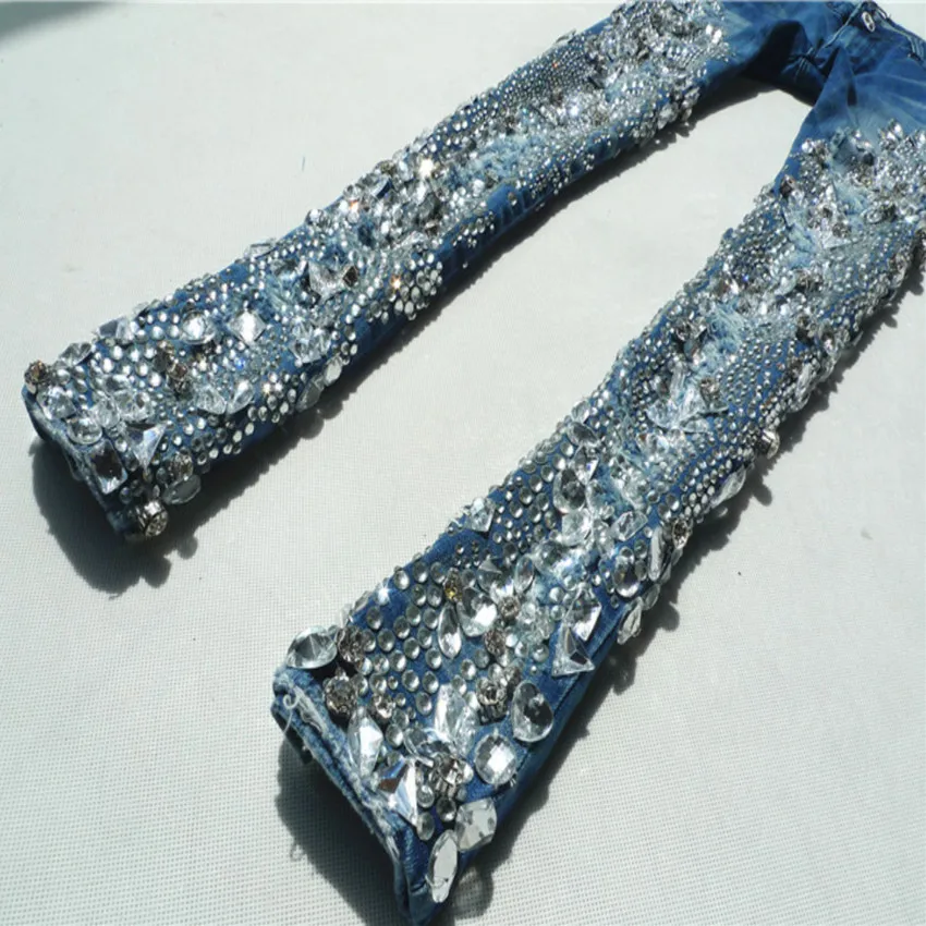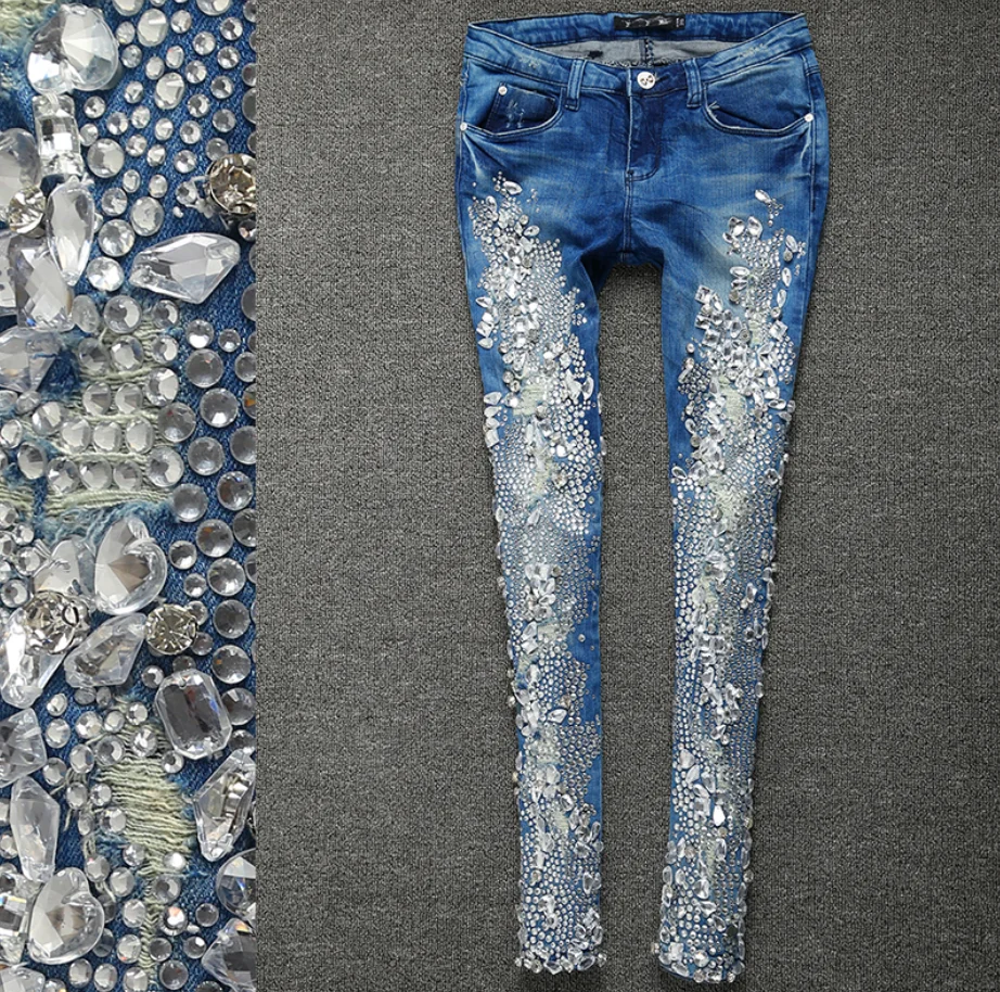 2021 весна осень модные стразы бриллиантовые узкие женские джинсы узкие джинсы-Карандаш Стретч