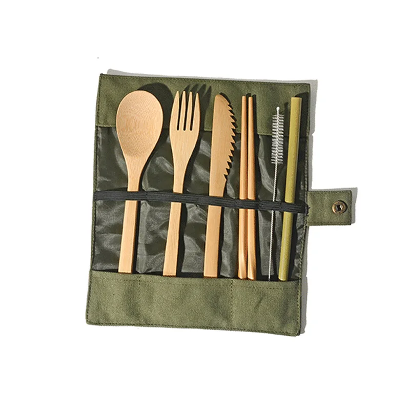 Портативные деревянные столовые приборы, деревянные столовые ножи, вилки, ложки, палочки для еды, столовые приборы для путешествий, экологичный костюм с сумкой в подарок