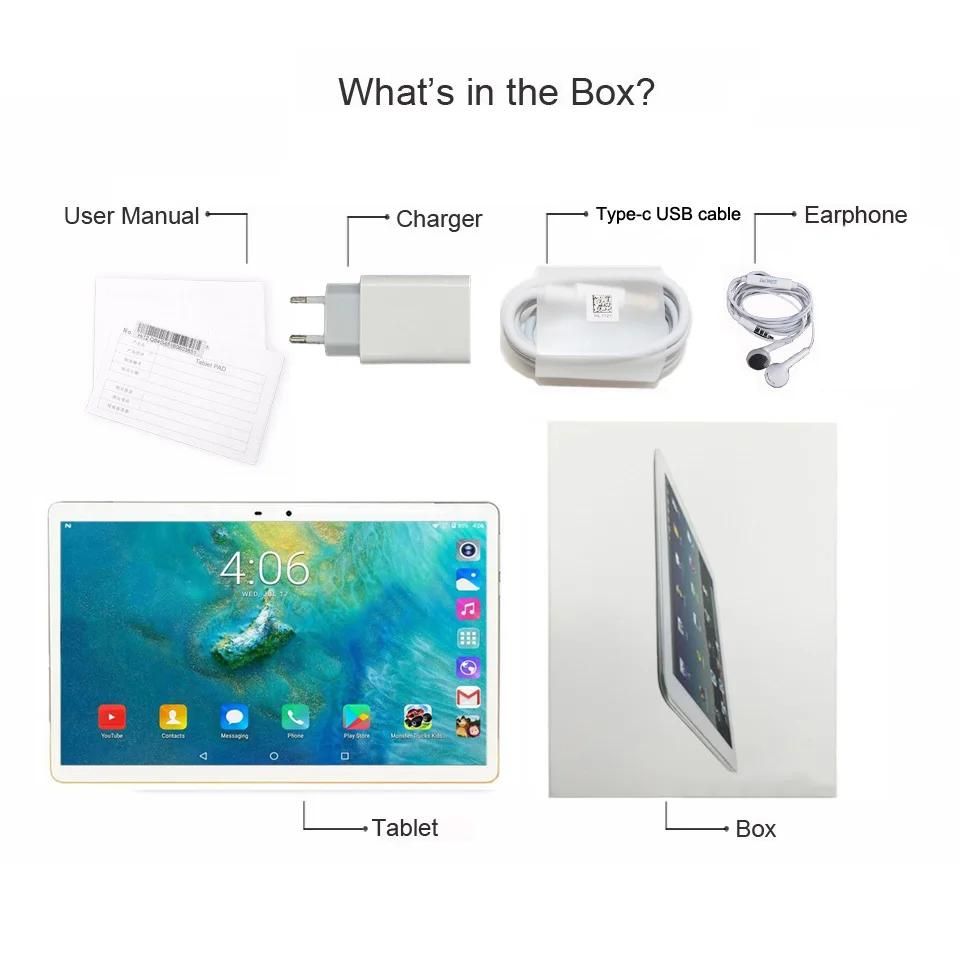 1 x планшетный ПК 1 x адаптер питания 1 x Руководство пользователя