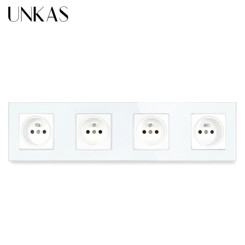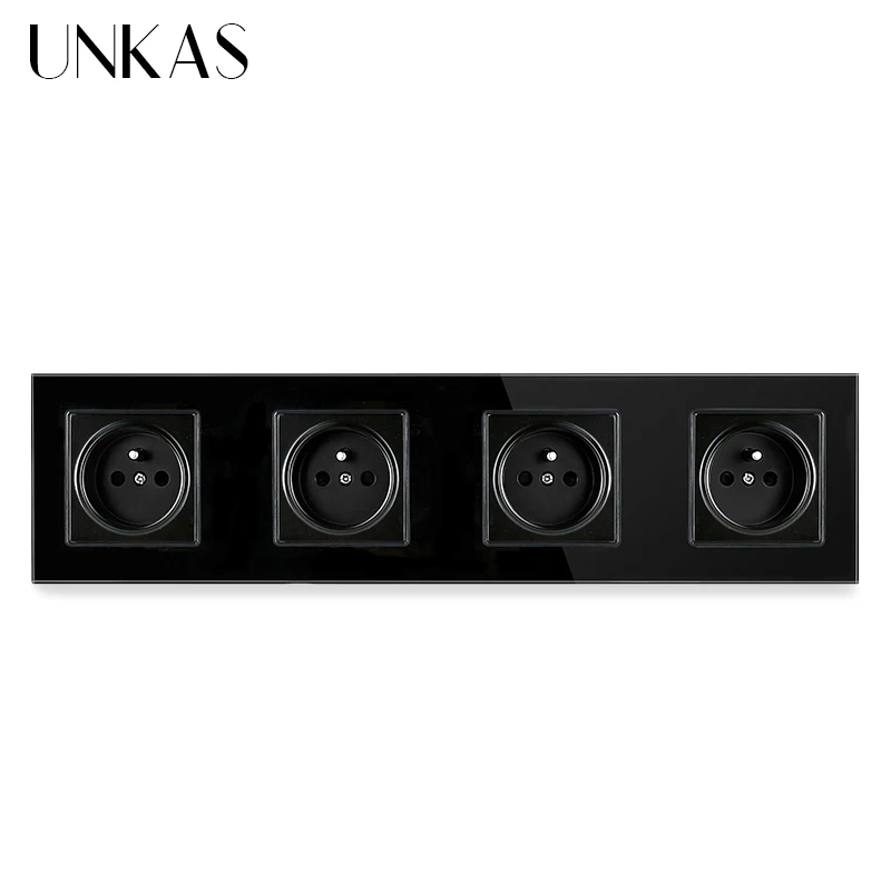 UNKAS 4 банды Хрустальная стеклянная панель французская стандартная настенная розетка 258*86 мм розетка заземленная 16А серая электрическая розетка