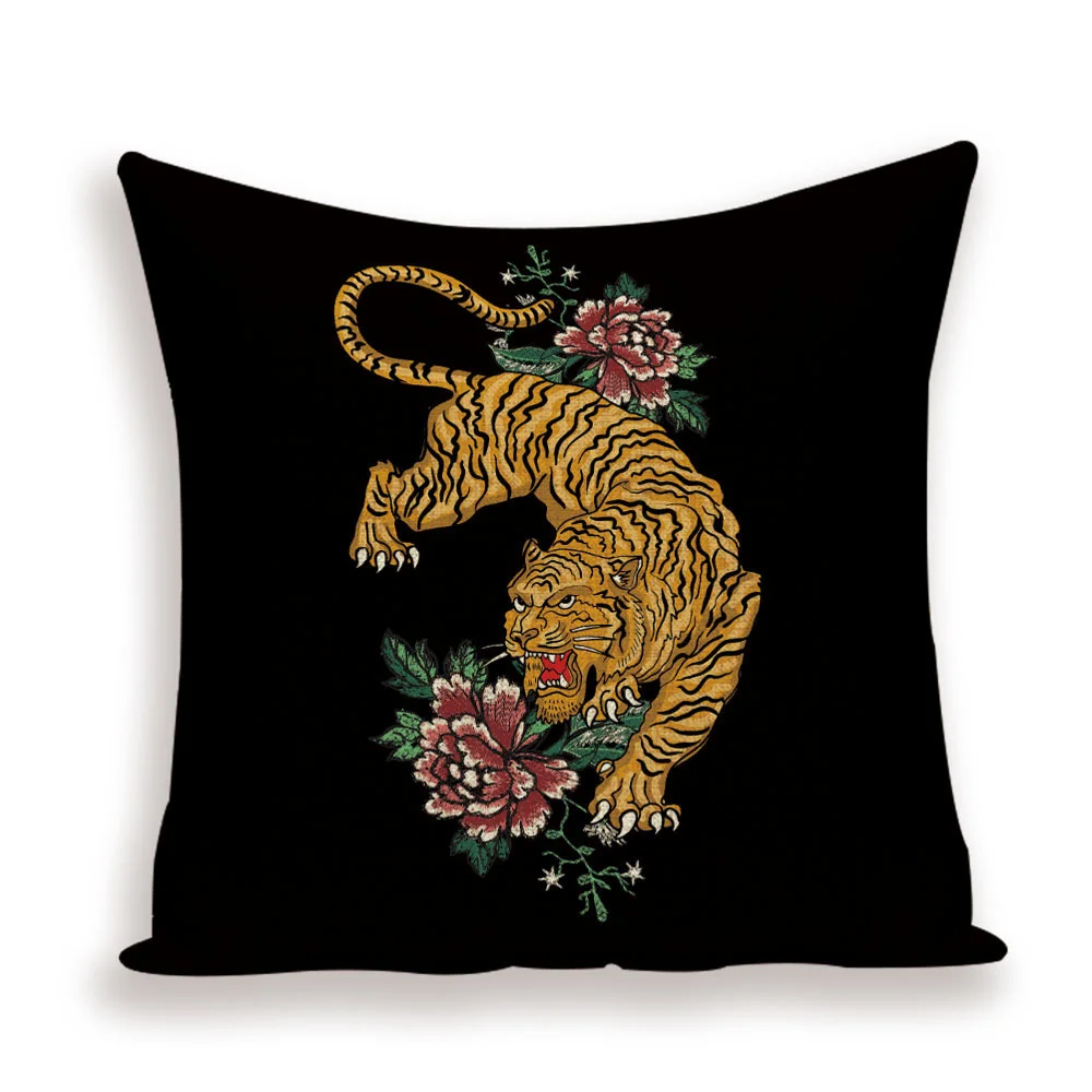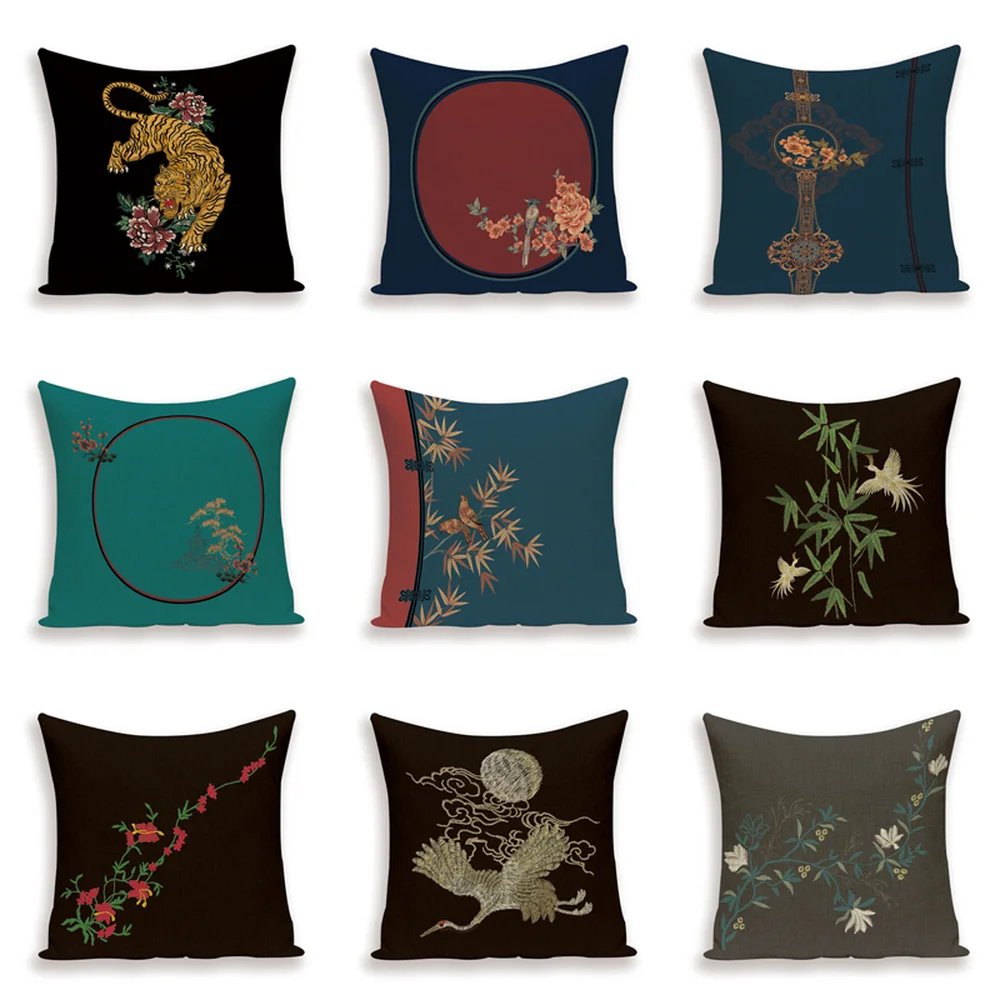 Чехол в стиле ретро с изображением цветов, декоративные льняные наволочки с тигром и журавлем, наволочки с бамбуковыми растениями, чехол для подушки, s Kissen