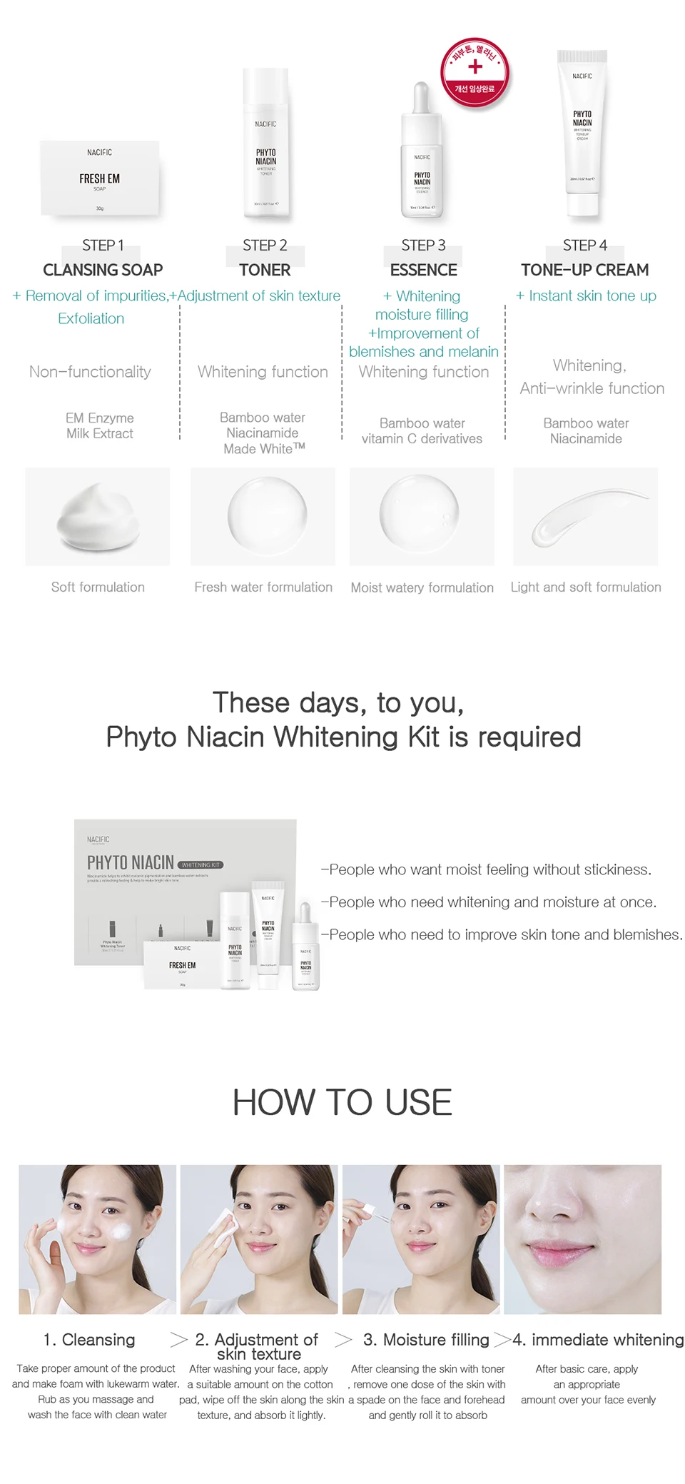 Фито ниацин отбеливание и лекарственных средств (FDA Nacific тонер успокоить эссенция тон-up Крем-мыло увлажнение с осветляющим эффектом питают косметический уход за кожей