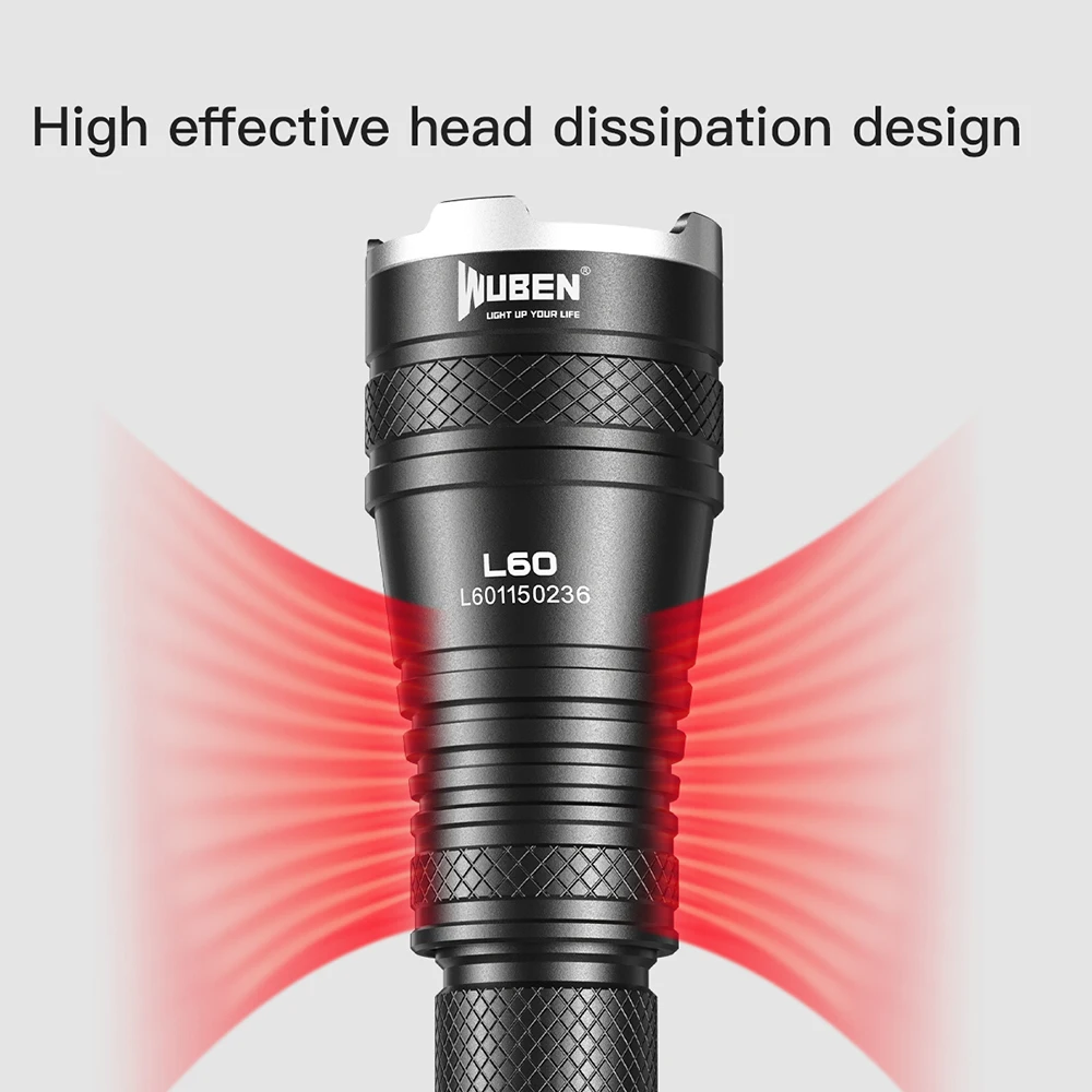 Водонепроницаемый светодиодный фонарик WUBEN L60 с 5 режимами освещения для лагеря, 1200 люмен, 18650