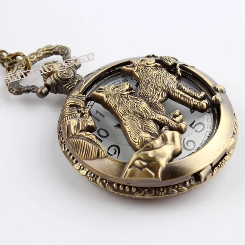 Ретро античный китайский зодиак ажурный кулон ожерелье мужской Круглый бронзовый Карманный Брелок часы для мальчиков СССР Relogio De Bolso подарки собака