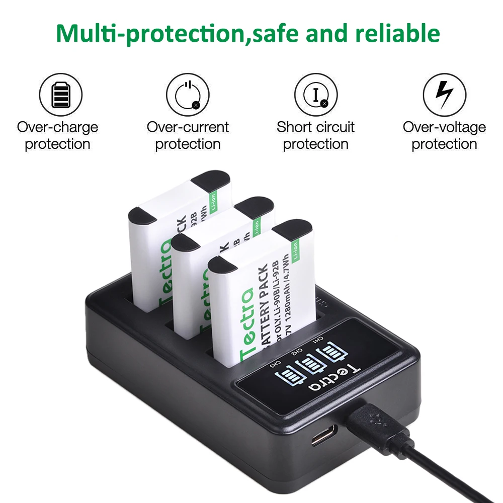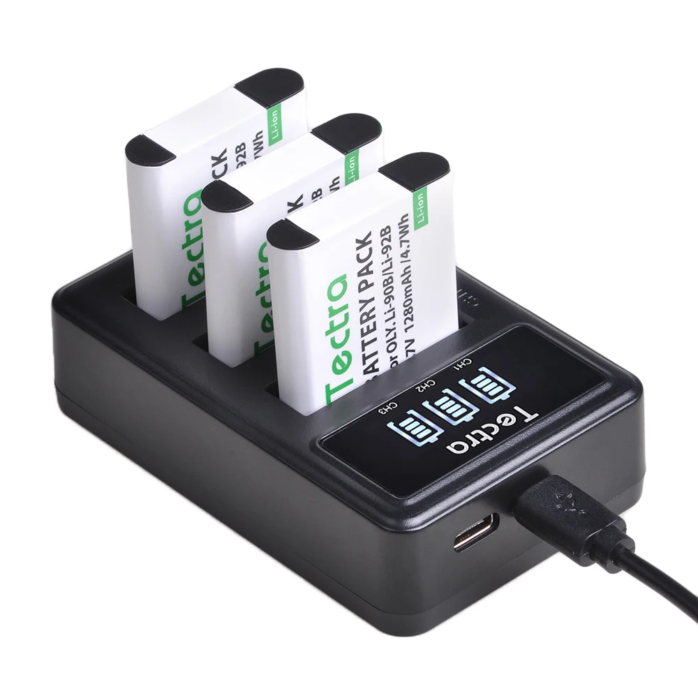 Tectra 3x1280 мА ч Li-90B Li 90B Li-92B Li92B аккумулятор + порт Type C зарядное устройство для Olympus Tough TG-1 TG-2 TG-3 TG-4 TG5 TG6 SH50 iHS