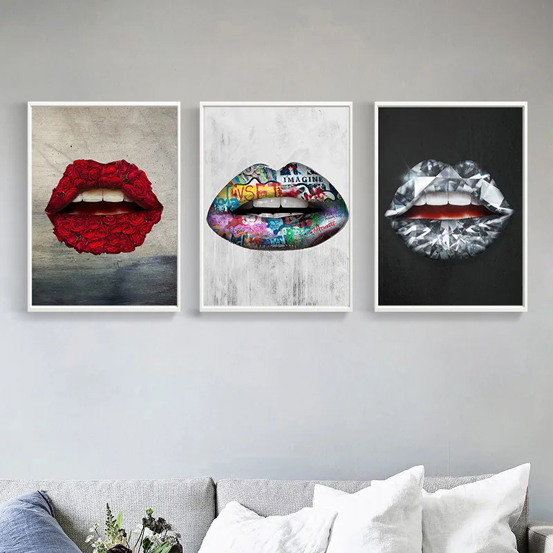 Цветной креативный Печатный холст, картина, сексуальные красные губы, цветок, постер, украшение дома, настенные художественные фотографии для гостиной