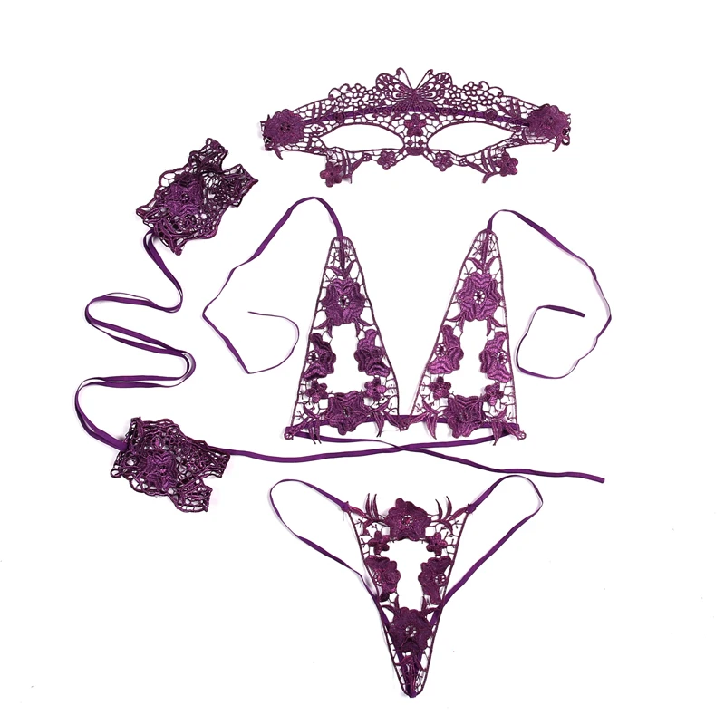 Комплект женского кружевного белья, 4 шт., соблазнительный кружевной комплект нижнего белья пуш-ап, эротическое женское нижнее белье, бюстгальтер и стринги