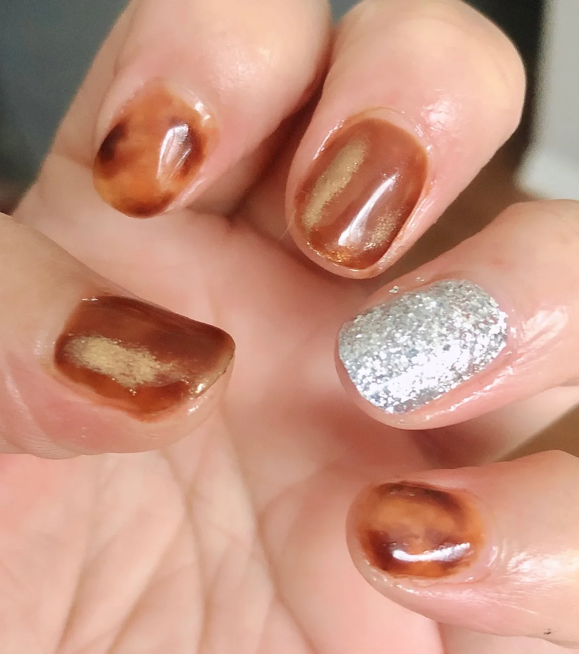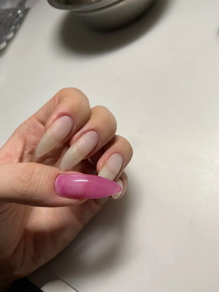 Интересный гель, очень жидки, но работать с ним можно, цвет красивый, наносила в два слоя. Пришёл за месяц