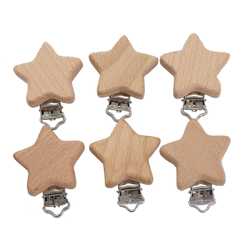 Chenkai 5 шт. деревянная пятиконечная звезда зажим DIY Органическая Экологически чистая натуральная НЕОБРАБОТАННАЯ детская соска погремушка захват аксессуары